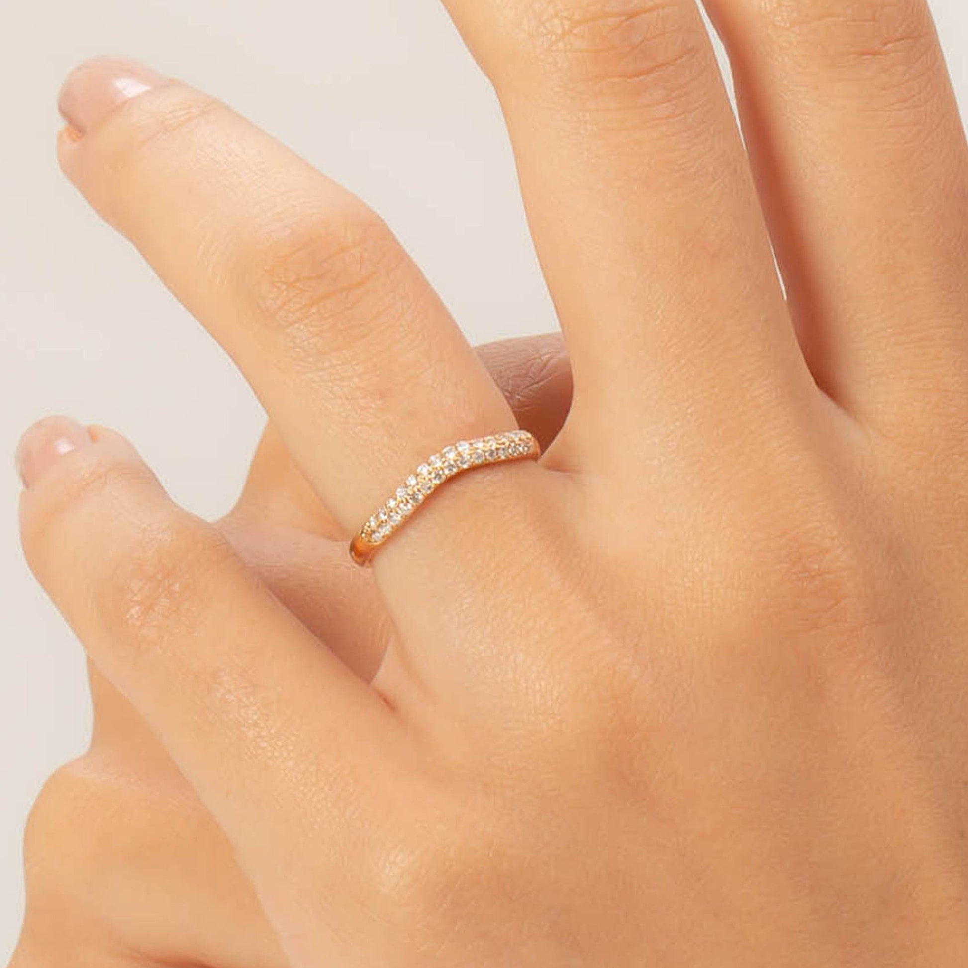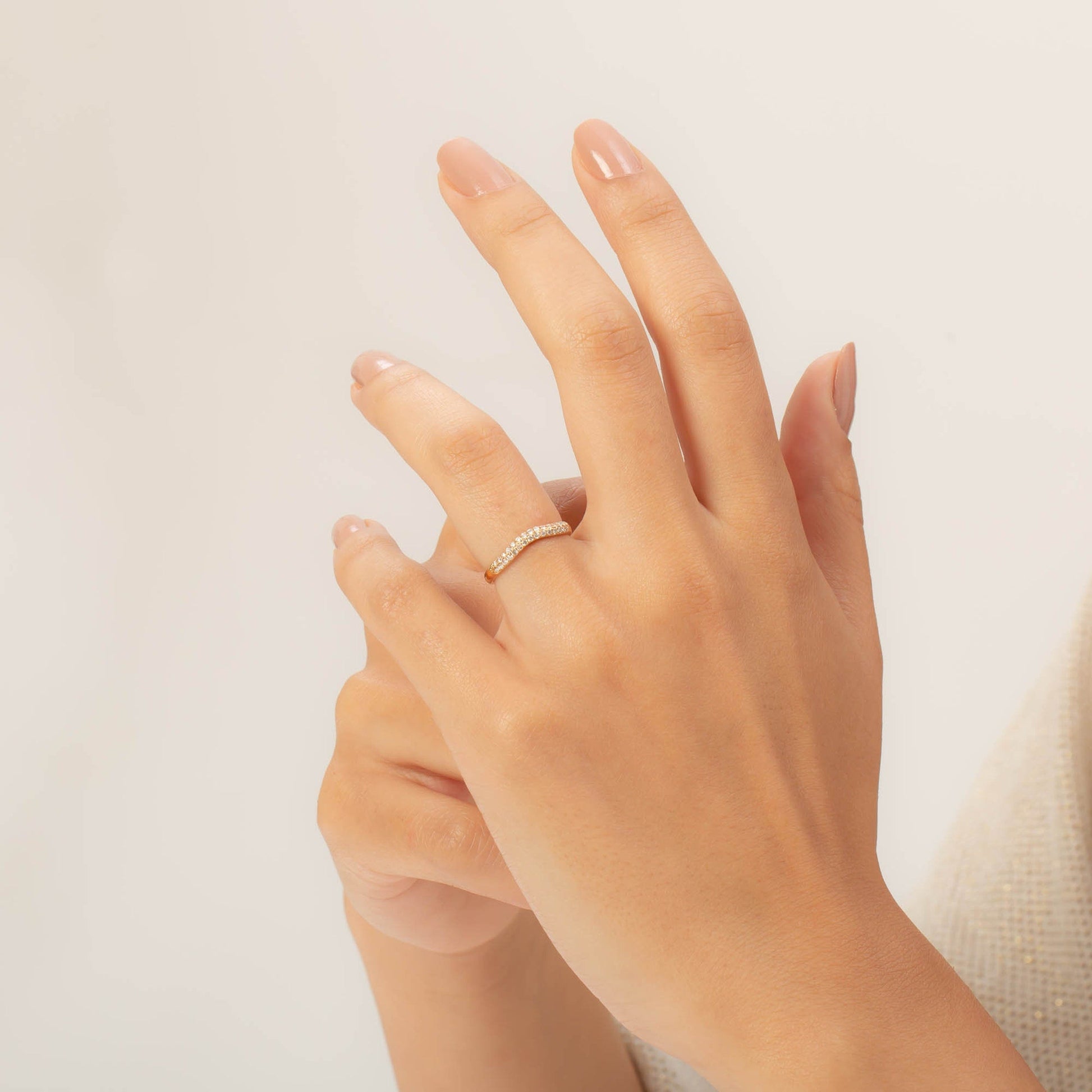 0.21 TCW Round Moissanite Curved Wedding Band