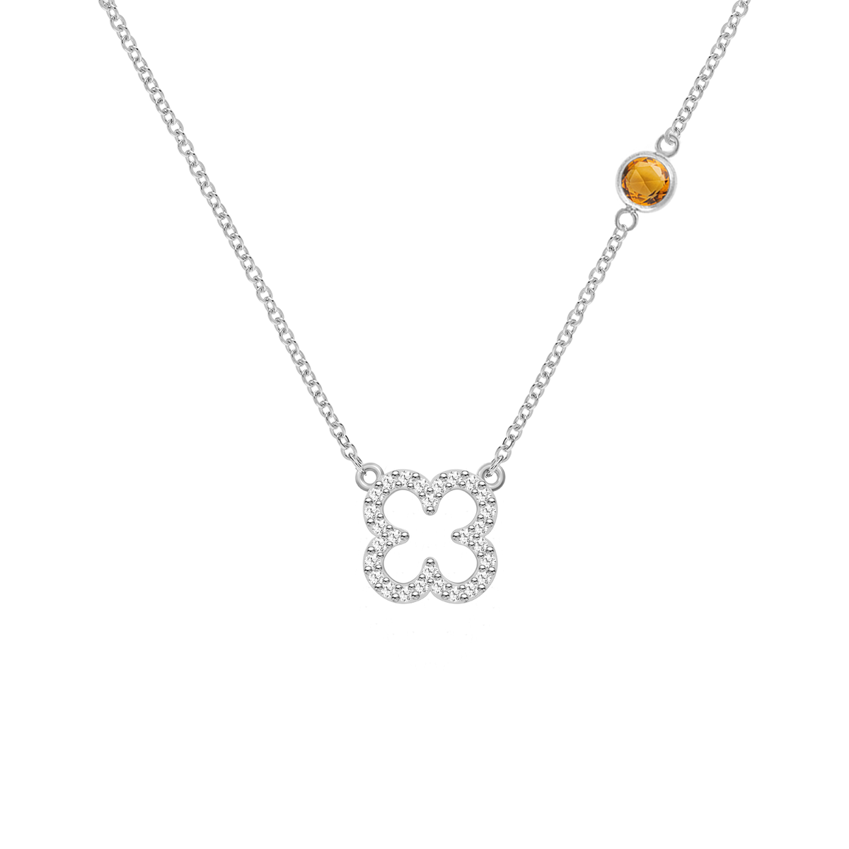 0.25CT Round Citrine Diamond November Birthstone Clover Necklace