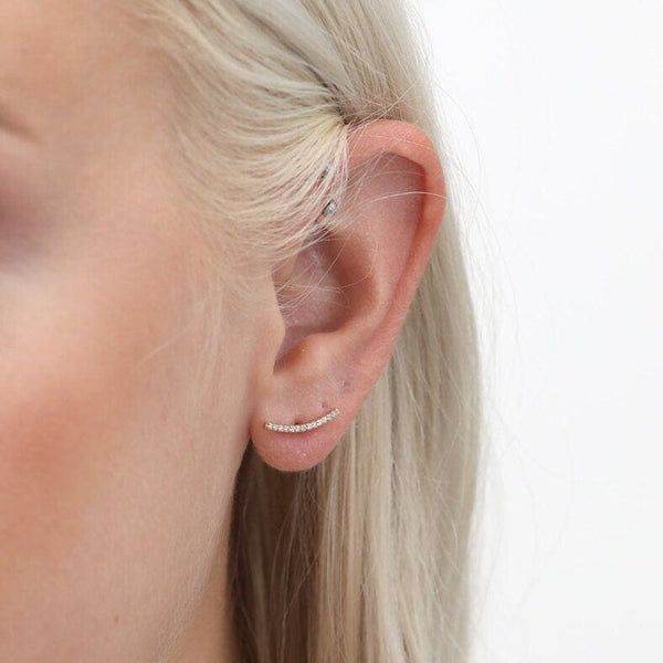 ✥ Introducing our sophisticated 0.2CT Round Bar Curved Moissanite Diamond Stud Earrings, crafted to enhance elegance with modern simplicity. Each earring showcases a curved bar design adorned with round moissanite diamonds, set in [metal type] for enduring beauty and brilliance. Perfect for everyday wear or special occasions, these studs offer a sleek, versatile style that effortlessly complements any ensemble. Embrace the understated luxury of these earrings, designed to add a touch of sparkle and sophistication to her look, making them an ideal choice to elevate her elegance with timeless charm.