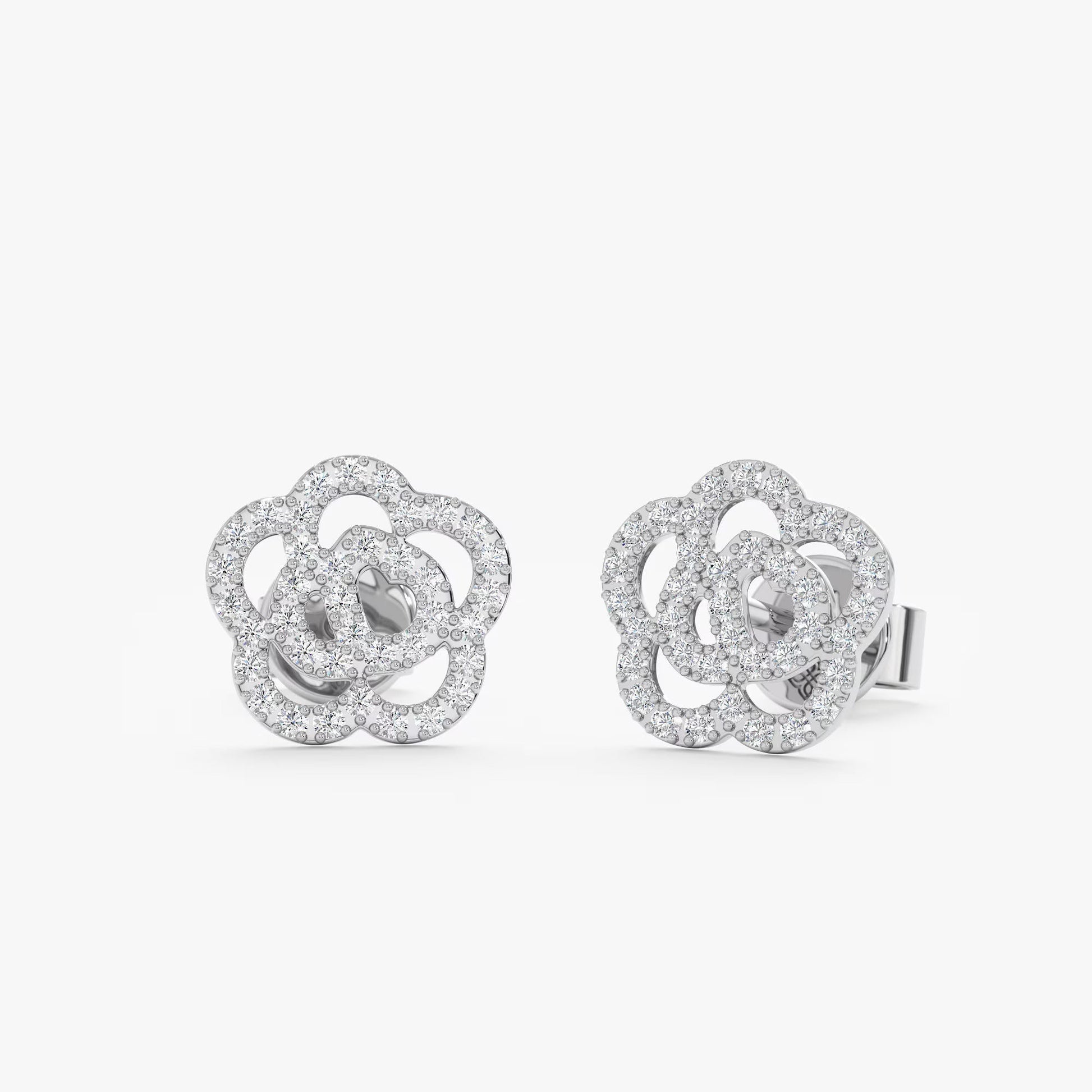 0.32CT Round Floral Moissanite Diamond Stud Earrings in Solid Gold