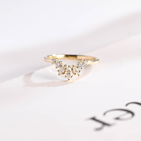 0.36CT Round & Marquise Cut Curved CVD EF/VVS Diamond Wedding Band