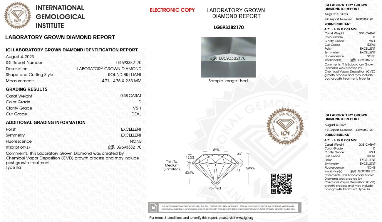 0.38ct D-VS1 Round Lab Diamond Pendant