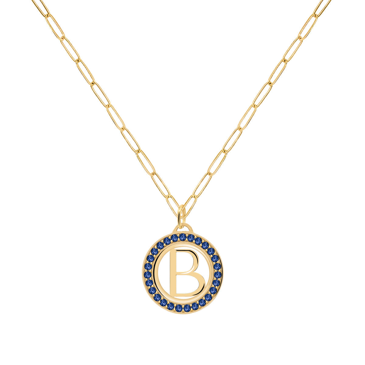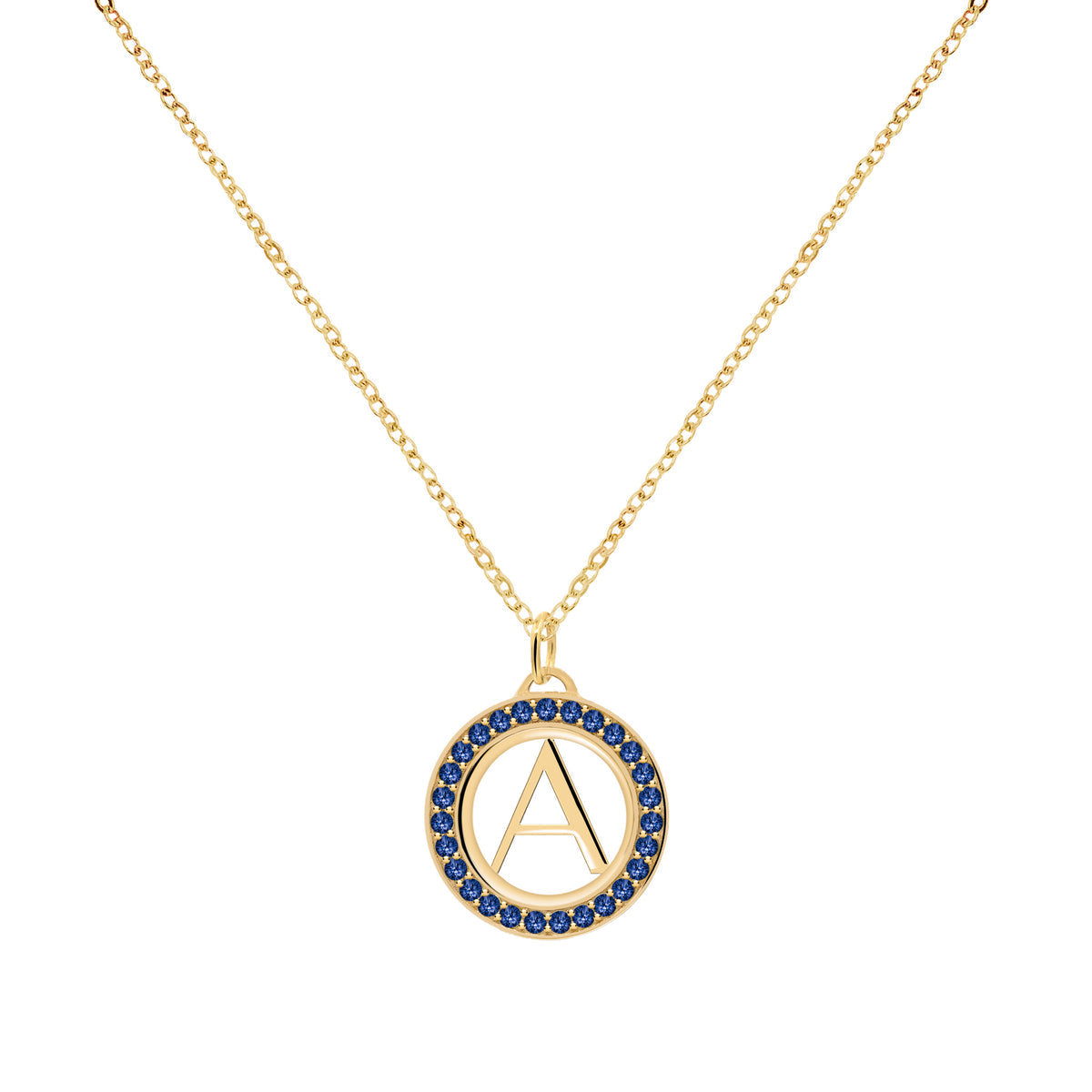 0.50CT Round Sapphire Diamond September Birthstone Latter Necklace