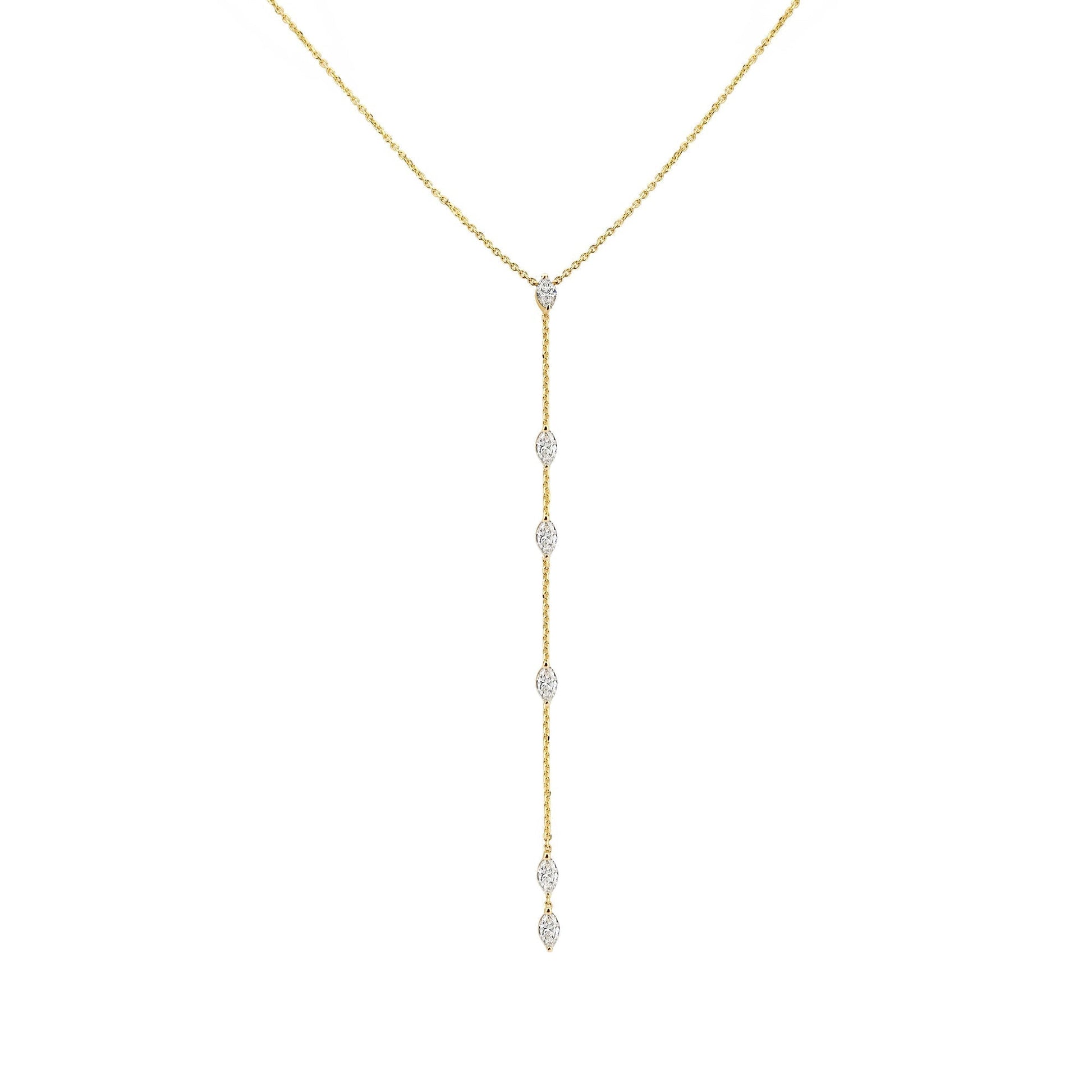 0.60 TCW Marquise Moissanite Diamond Bezel Starstruck Lariat Pendent Necklace