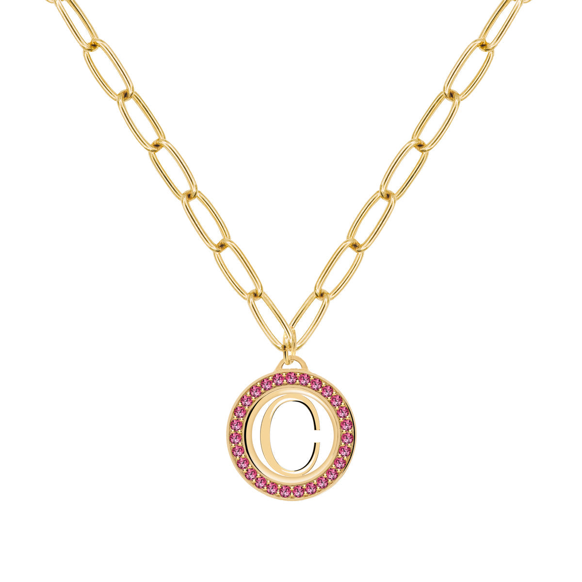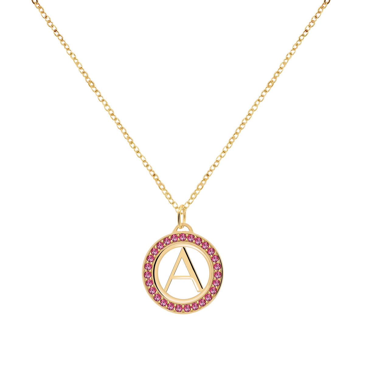 0.75CT Round Ruby Diamond July Birthstone Circle Latter Necklace