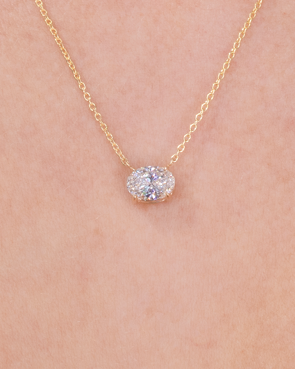 0.77ct E-VVS2 Oval Lab Diamond 14k Yellow Gold Pendant