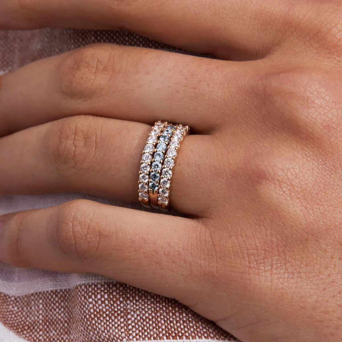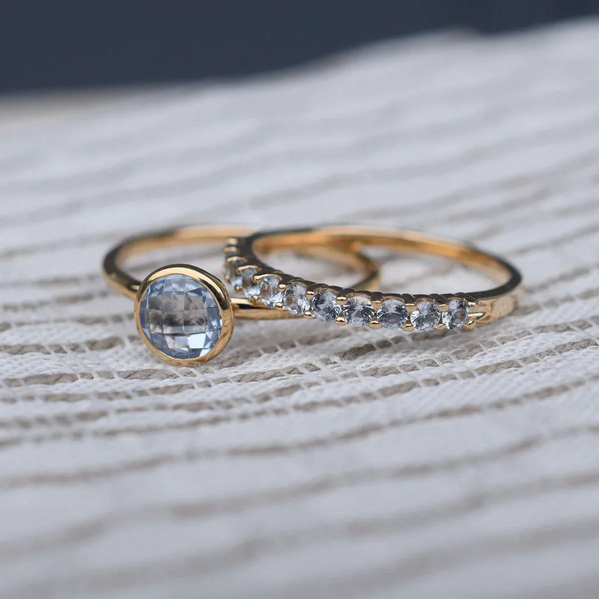 0.85CT Round Cut Aquamarine Diamond March Birthstone Band