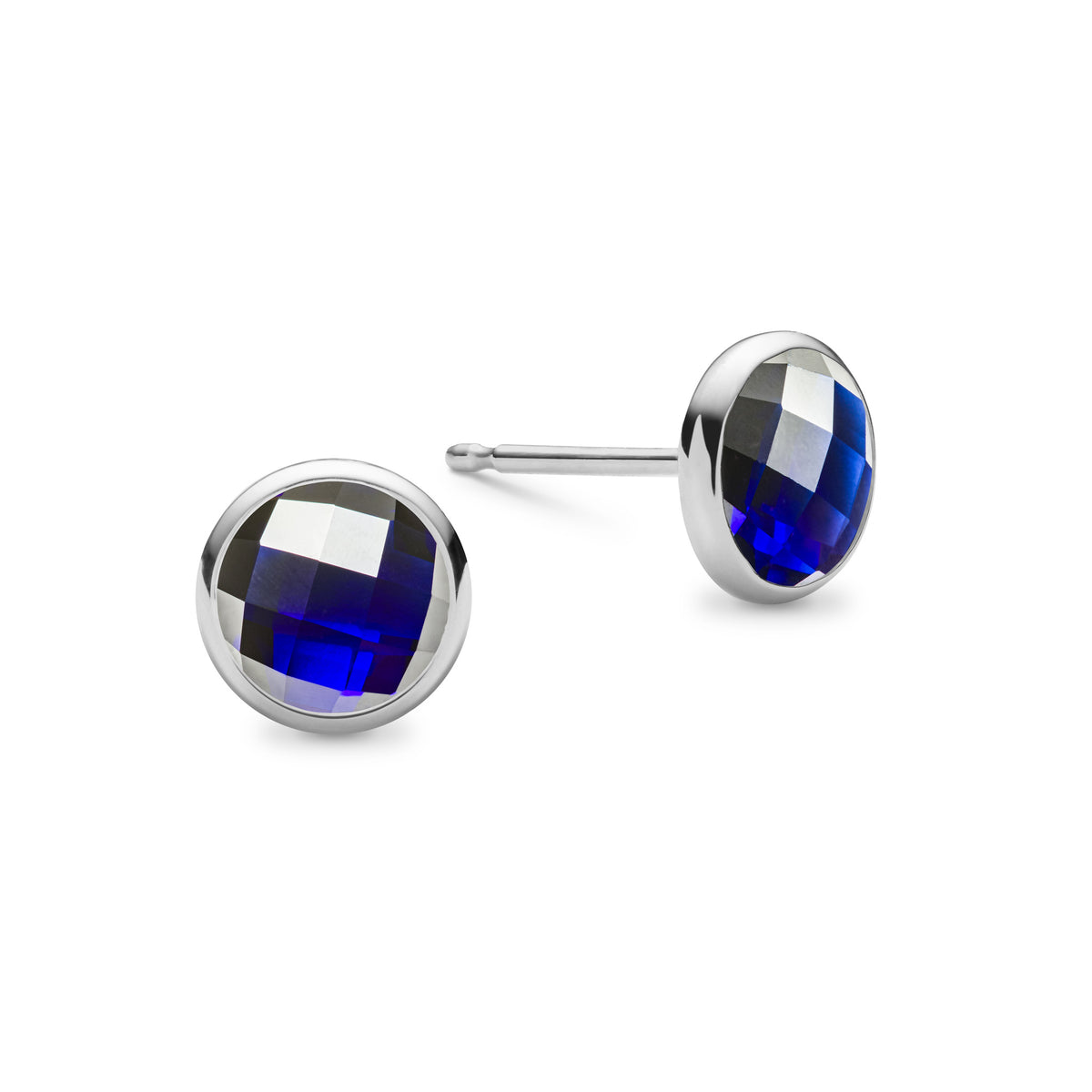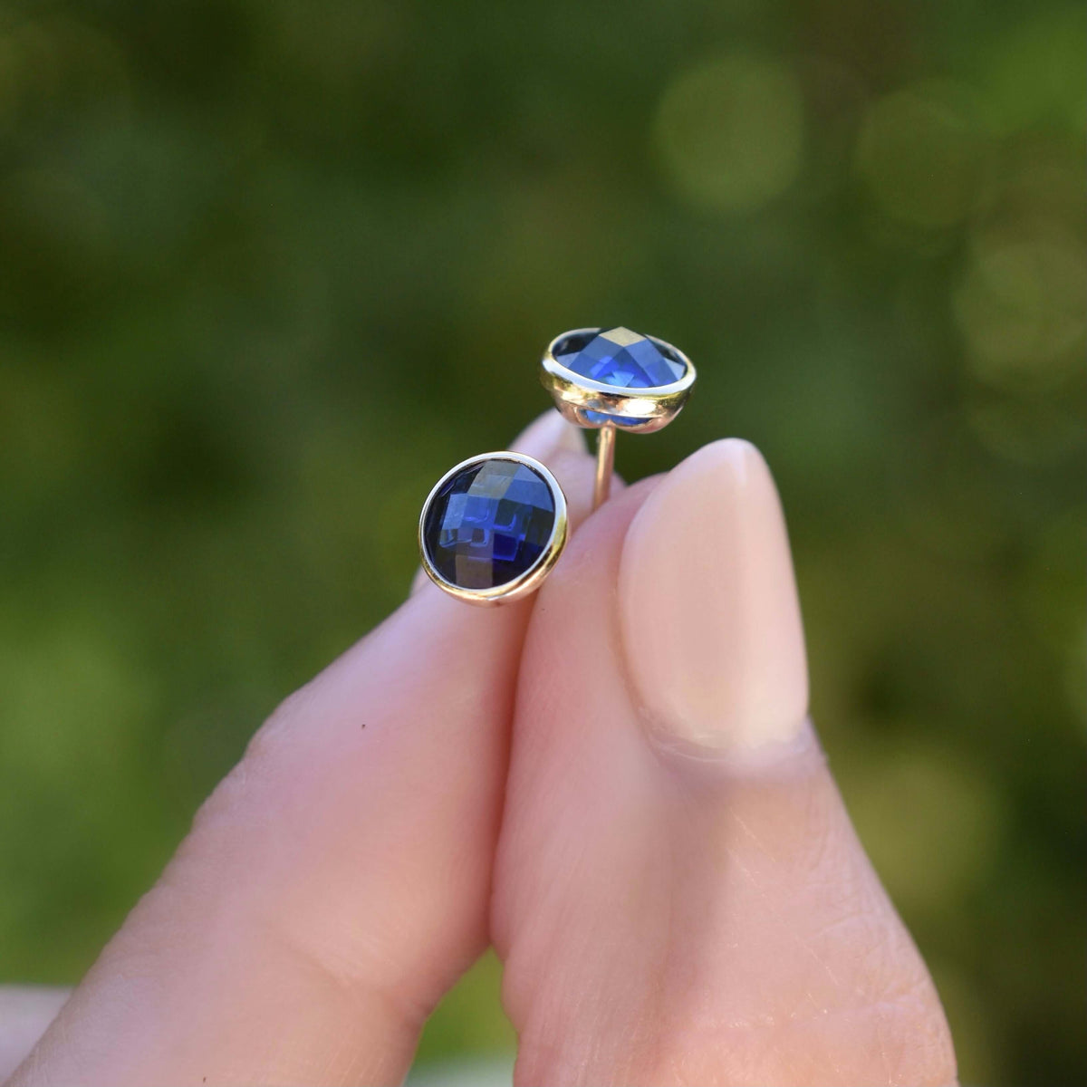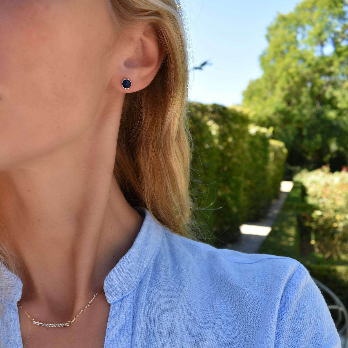 0.90CT Bezel Round Sapphire Diamond September Birthstone Studs
