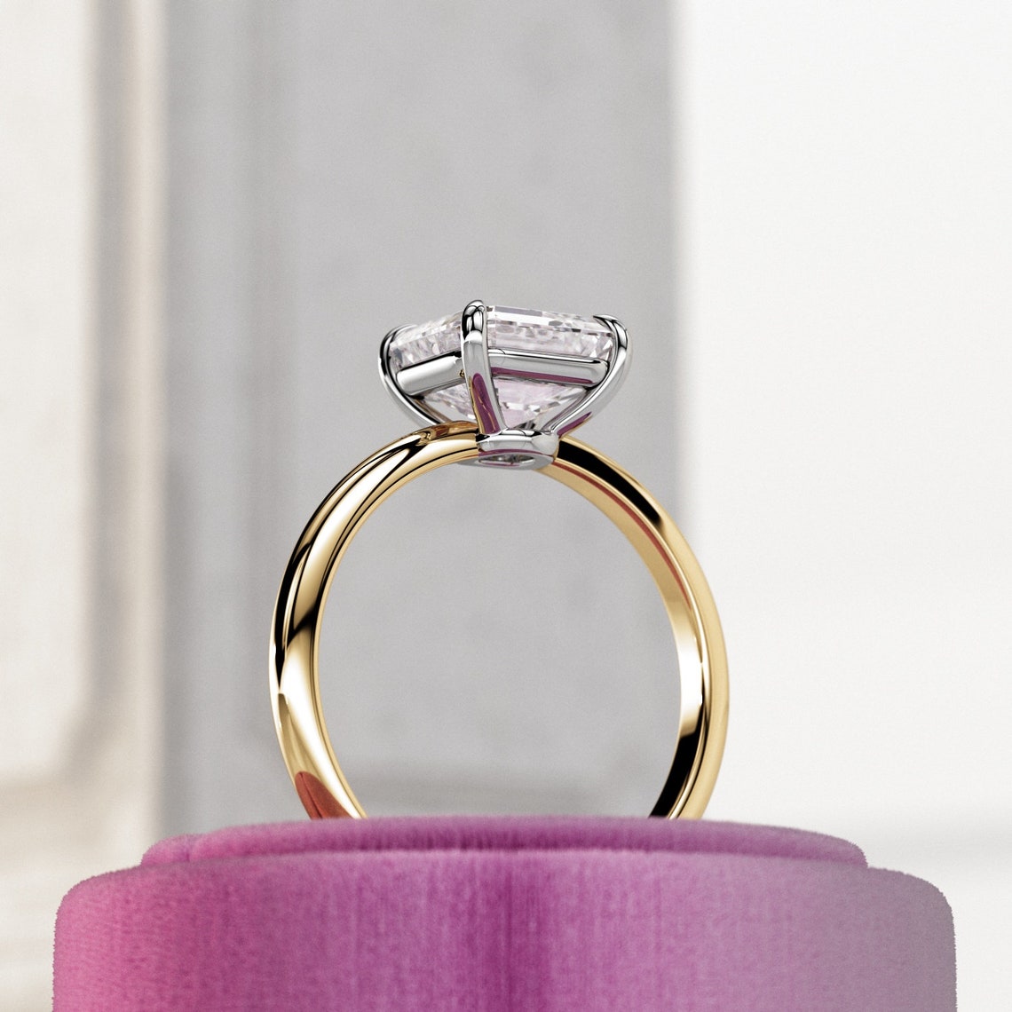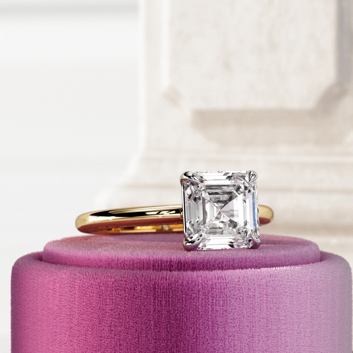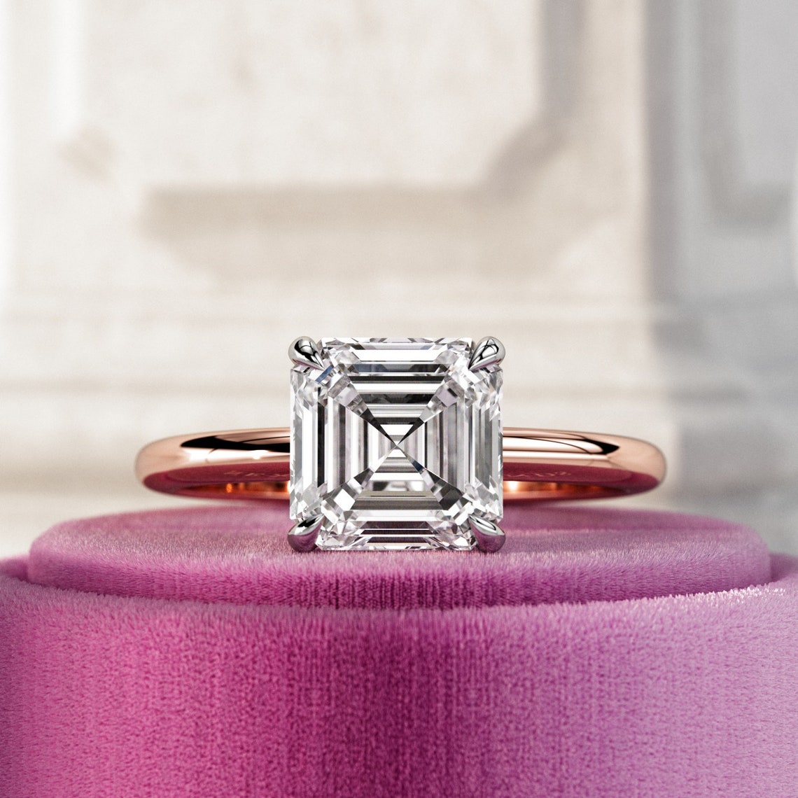 1.0 - 3.0 CT Asscher CVD Diamond Solitaire Engagement Ring