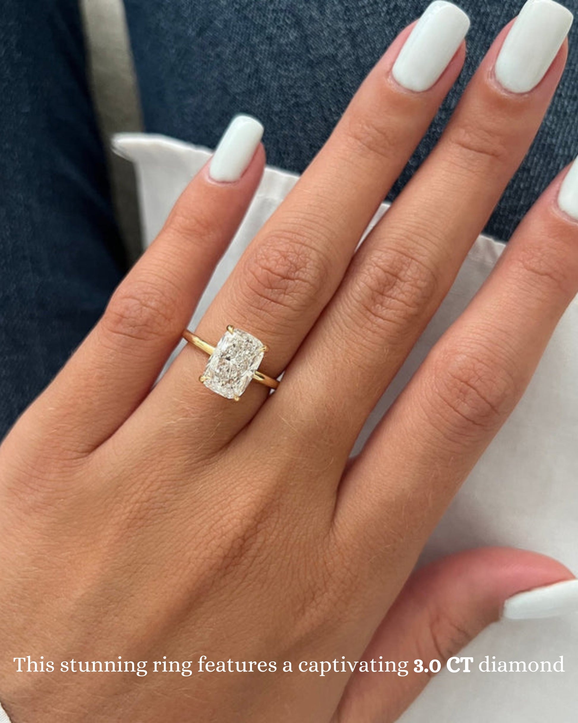1.0 - 3.0 CT Elongated Cushion CVD Diamond Solitaire Engagement Ring