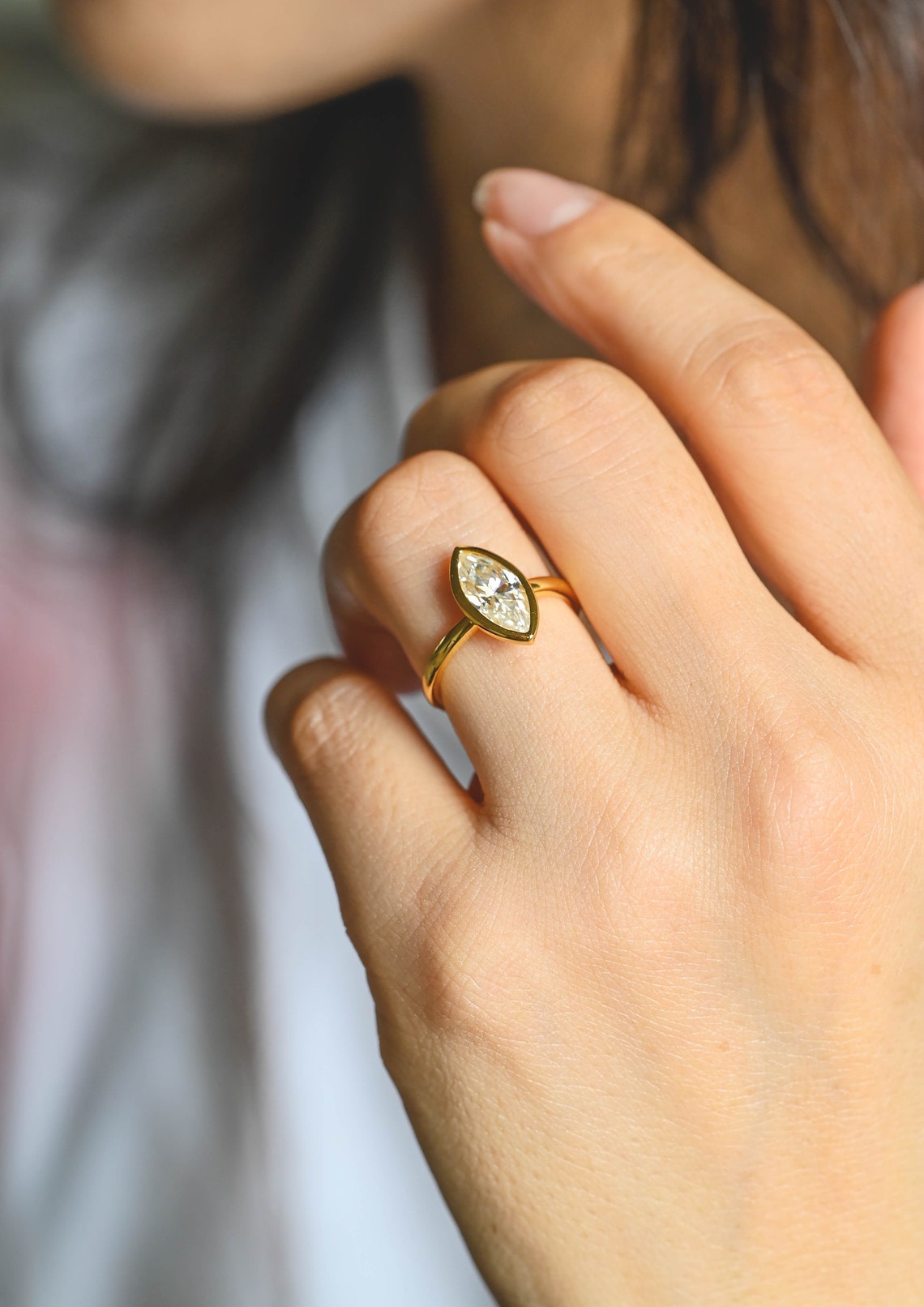 1.0 - 3.0 CT Marquise CVD Diamond Bezel Solitaire Engagement Ring
