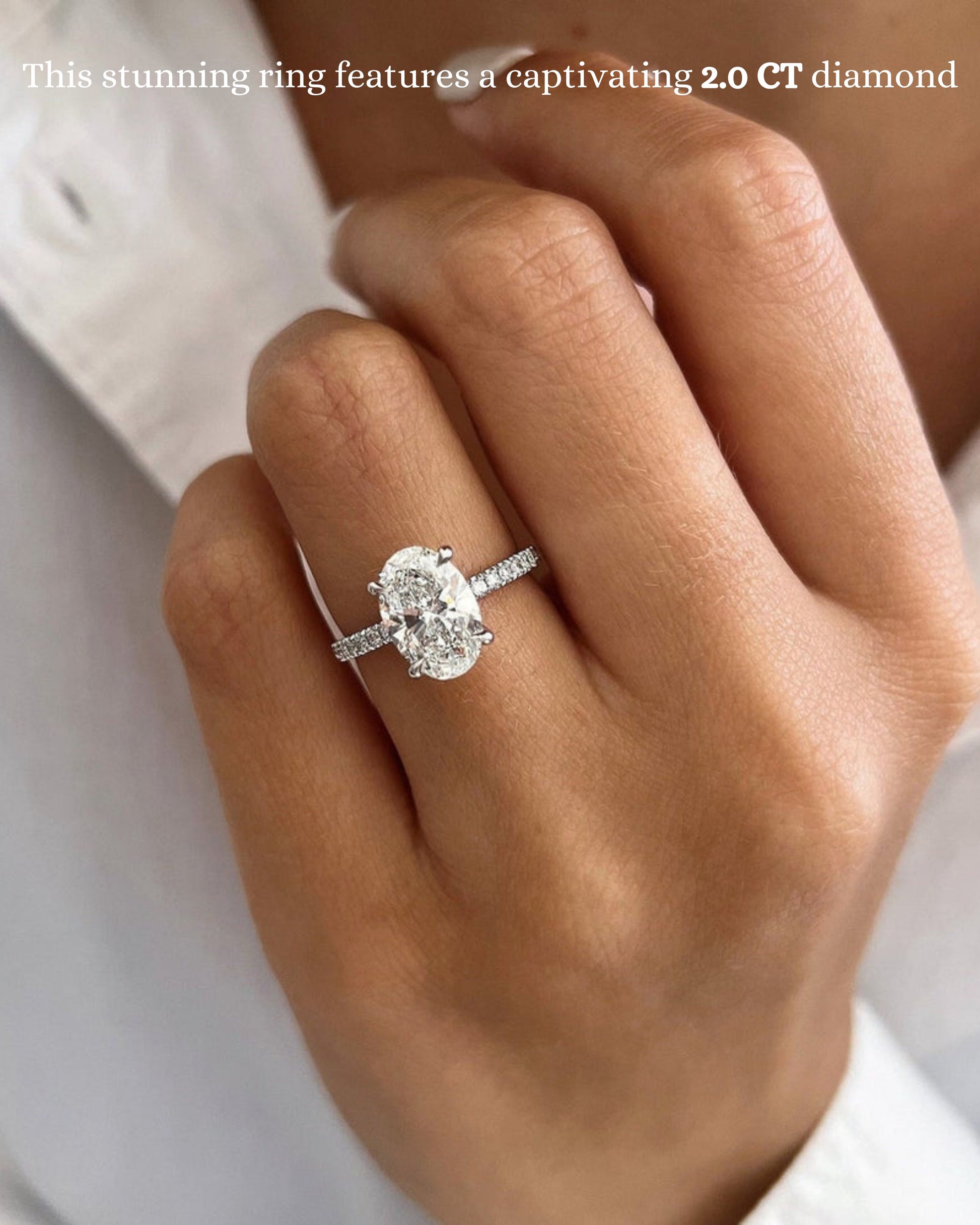1.0-3.0 CT Oval CVD Diamond Pave Setting Engagement Ring