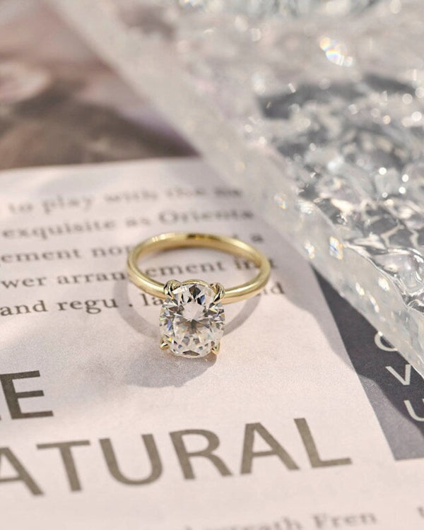 1.0-3.0 CT Oval CVD Diamond Solitaire Engagement Ring
