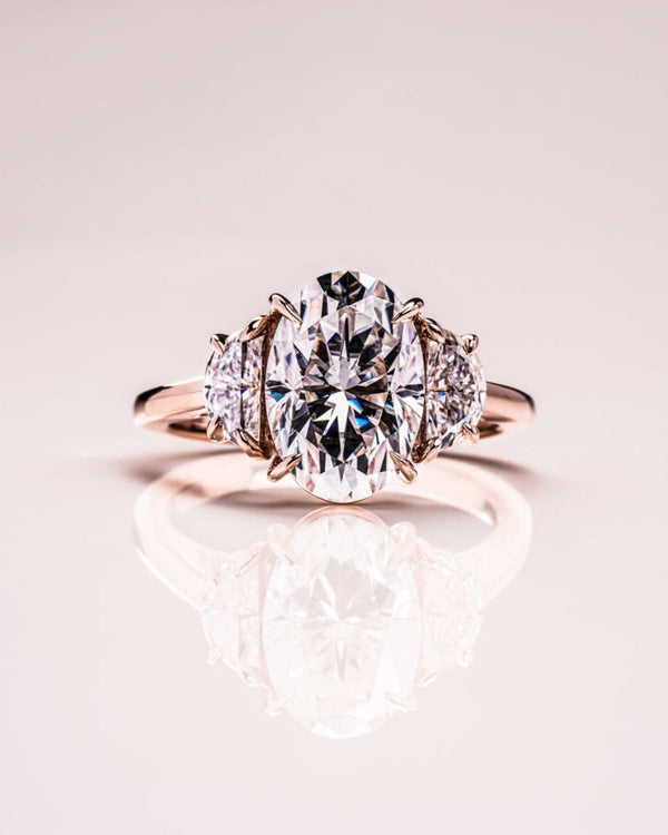 1.0 - 3.0 CT Oval CVD Diamond Three Stones Engagement Ring