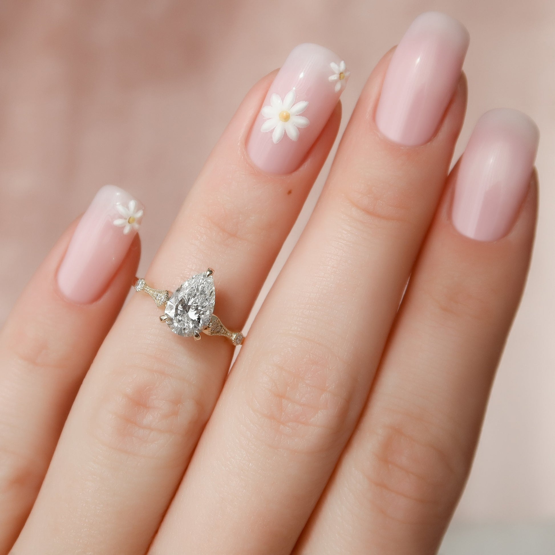 1.0 - 3.0 CT Pear Cut CVD Diamond Vintage Engagement Ring