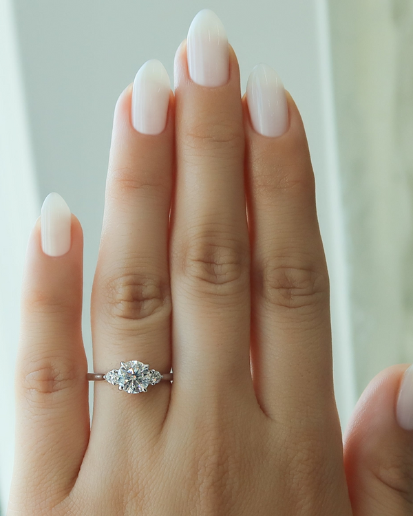 1.0 - 3.0 CT Round Cut CVD Diamond Three Stone Style Engagement Ring