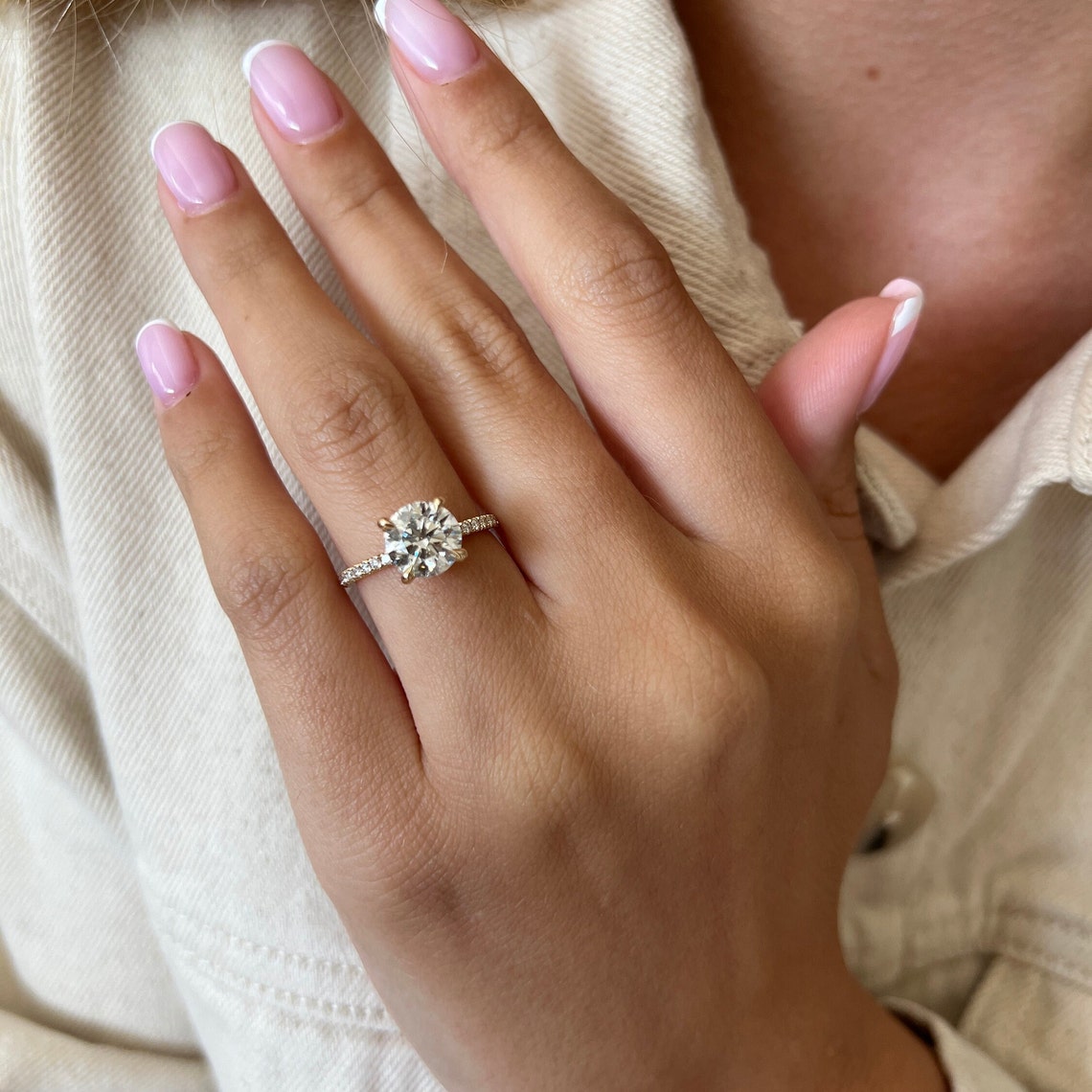 1.0 - 3.0 CT Round CVD Diamond Pave Setting Engagement Ring