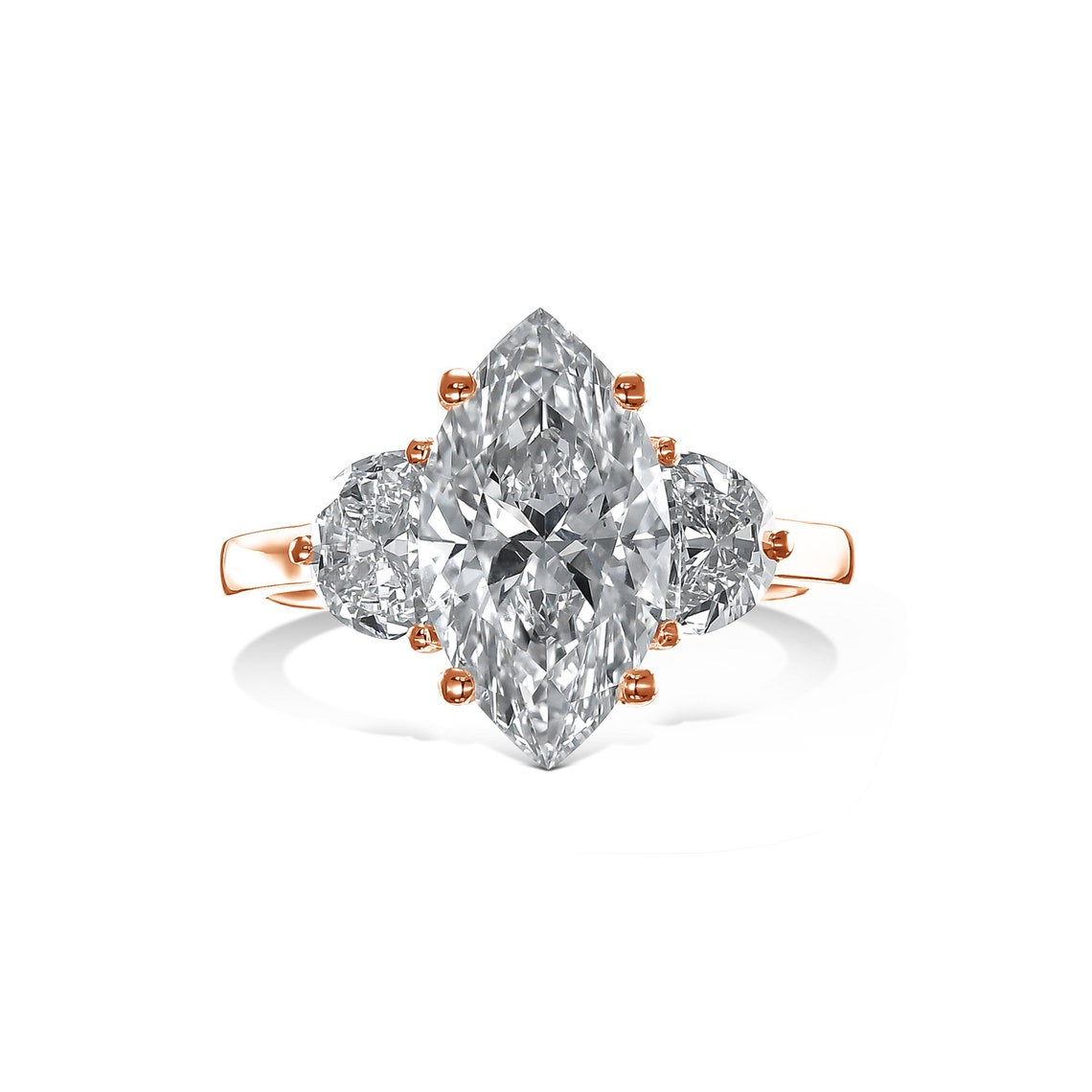 1.0-3.30 CT Marquise CVD Diamond Three Stones Engagement Ring