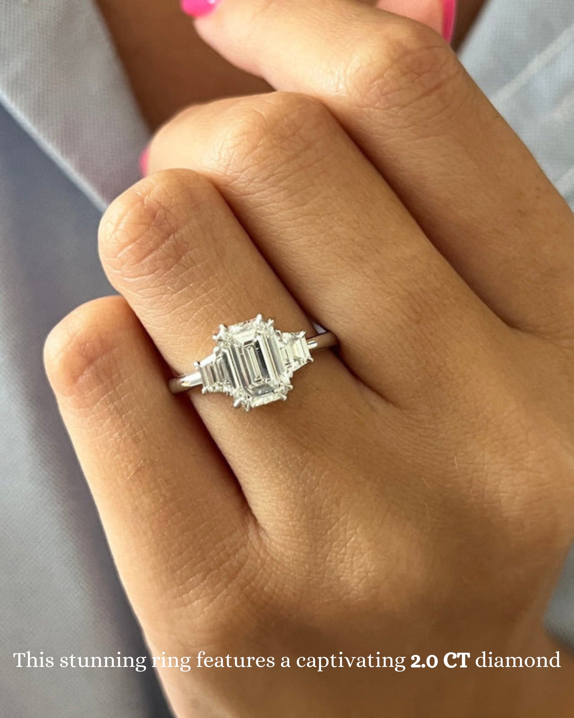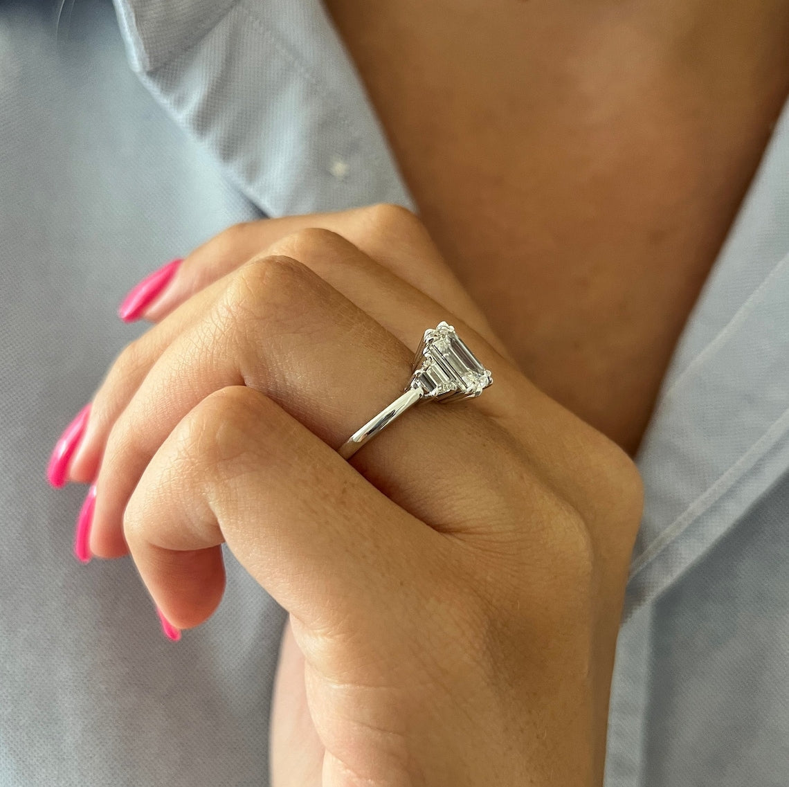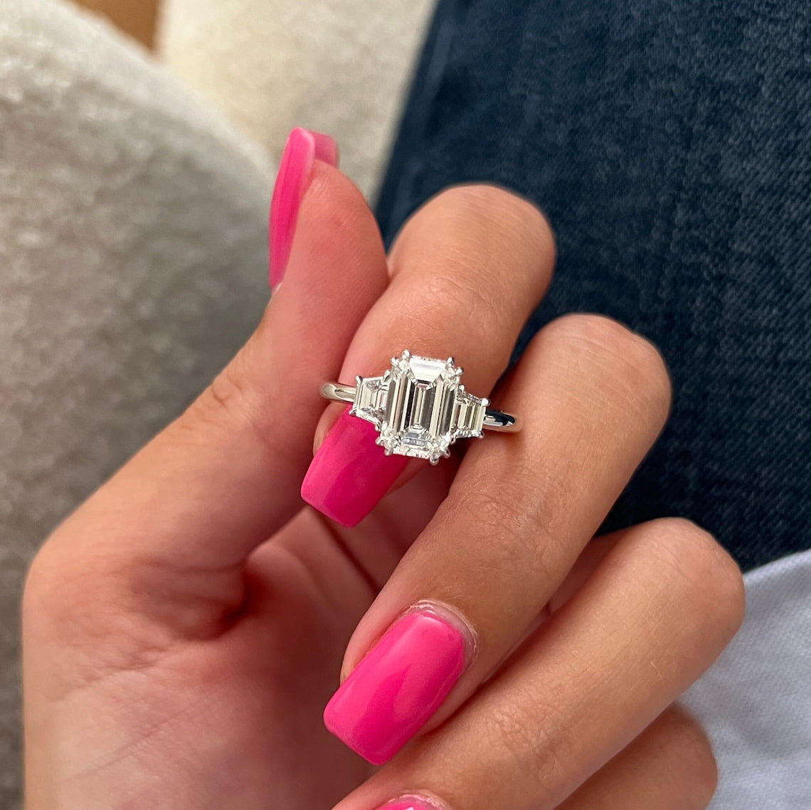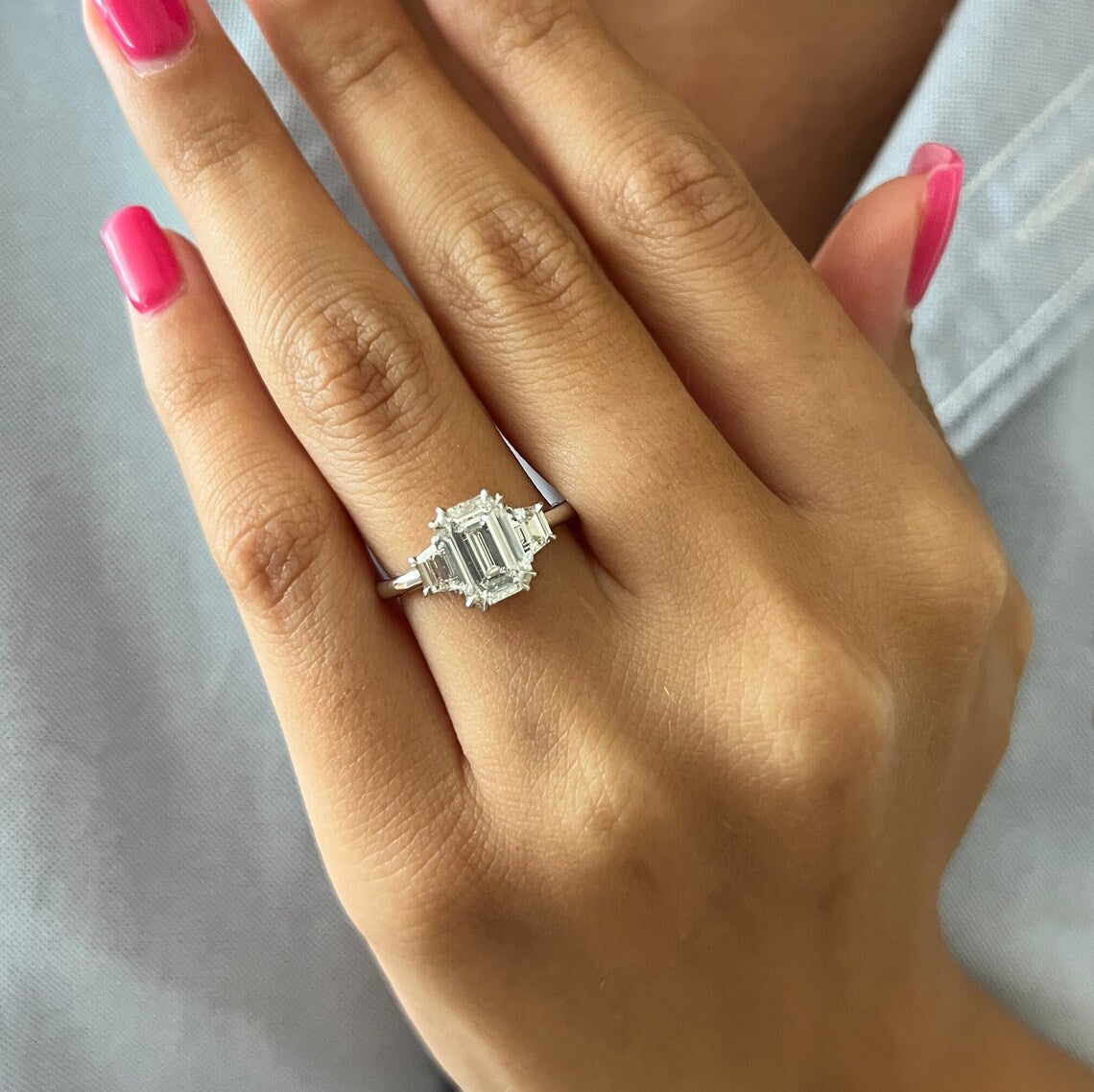 1.0 CT-3.0 CT Emerald CVD Diamond Three Stone Style Engagement Ring