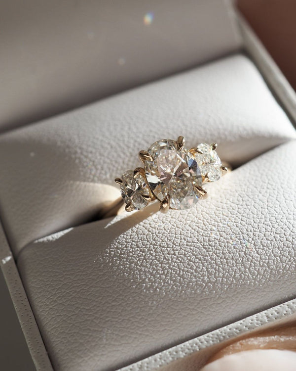 1.0 CT Oval E/VS1 CVD Diamond Three Stone Style Engagement Ring