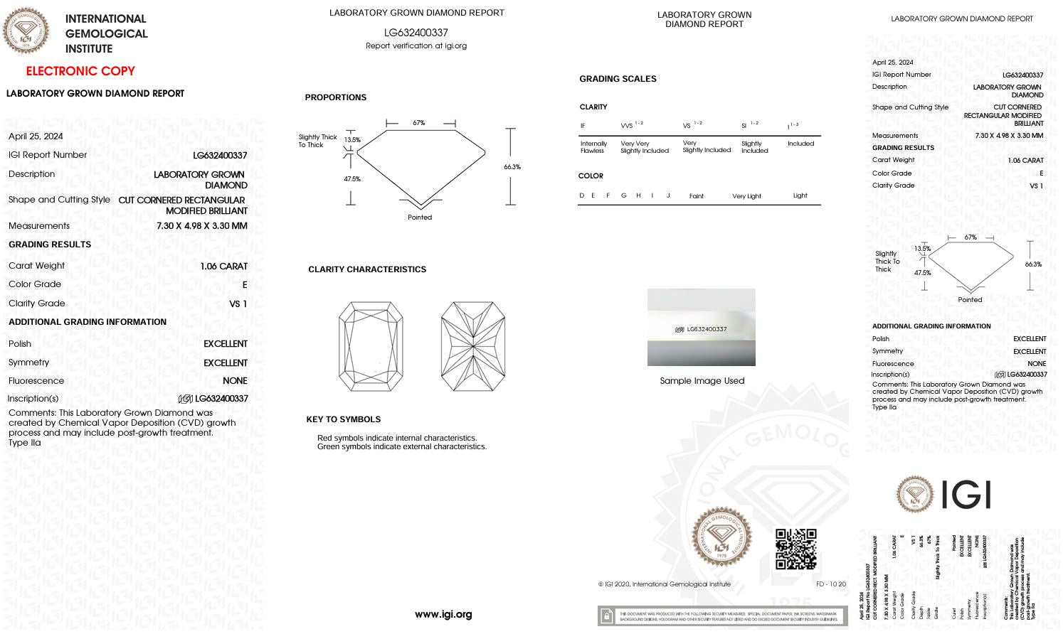 1.06ct E-VS1 Radiant Lab Diamond Pendant