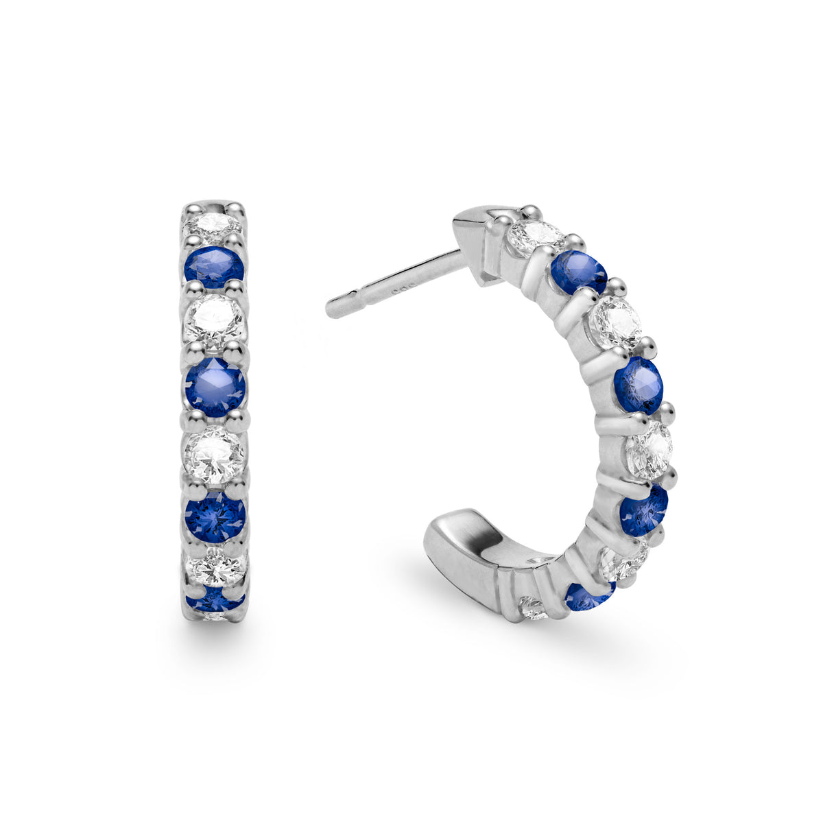 1.08CT Round Sapphire Diamond September Birthstone Hoops