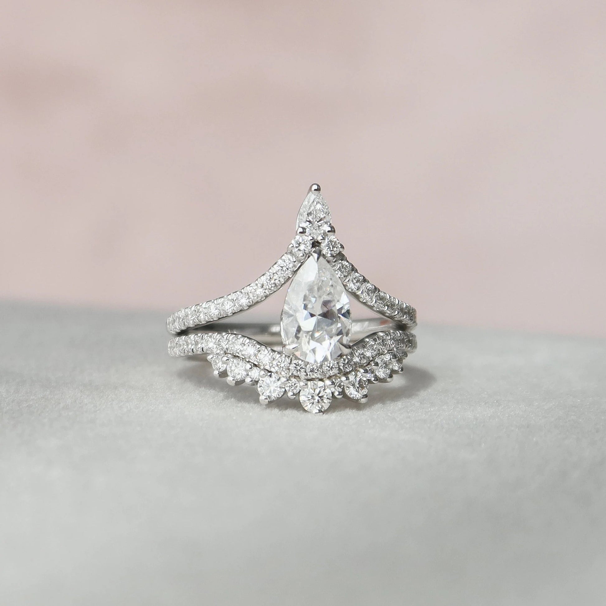1.0CT Pear Cut Moissanite Halo Bridal Engagement Ring Set