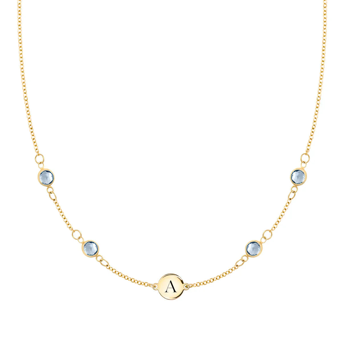 1.0CT Round Aquamarine Diamond March Birthstone Latter Necklace