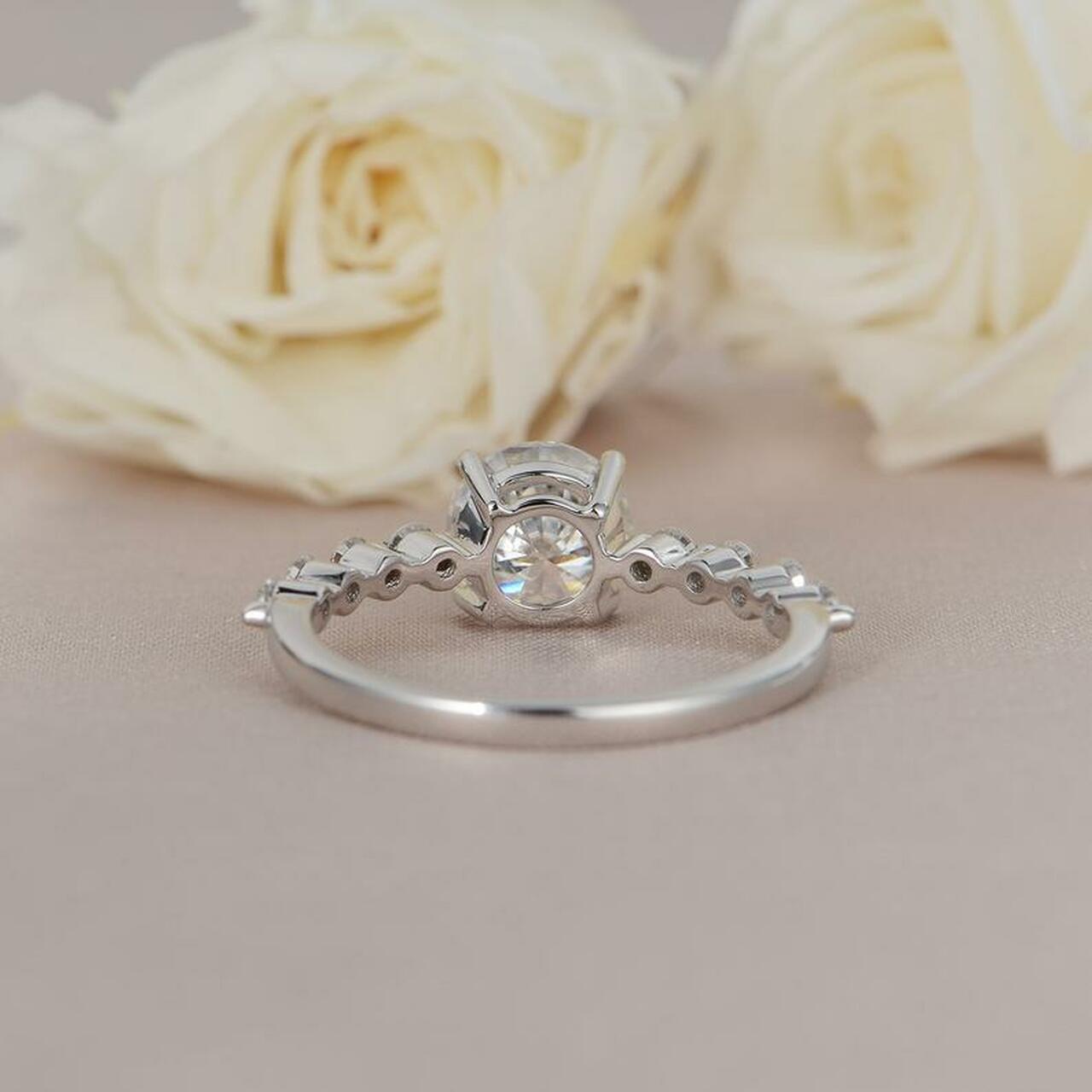 1.0CT Round Brilliant Cut Pave Style Moissanite Engagement Ring