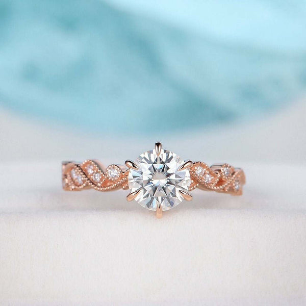 1.0CT Round Cut Art Deco Pave Style Moissanite Engagement Ring