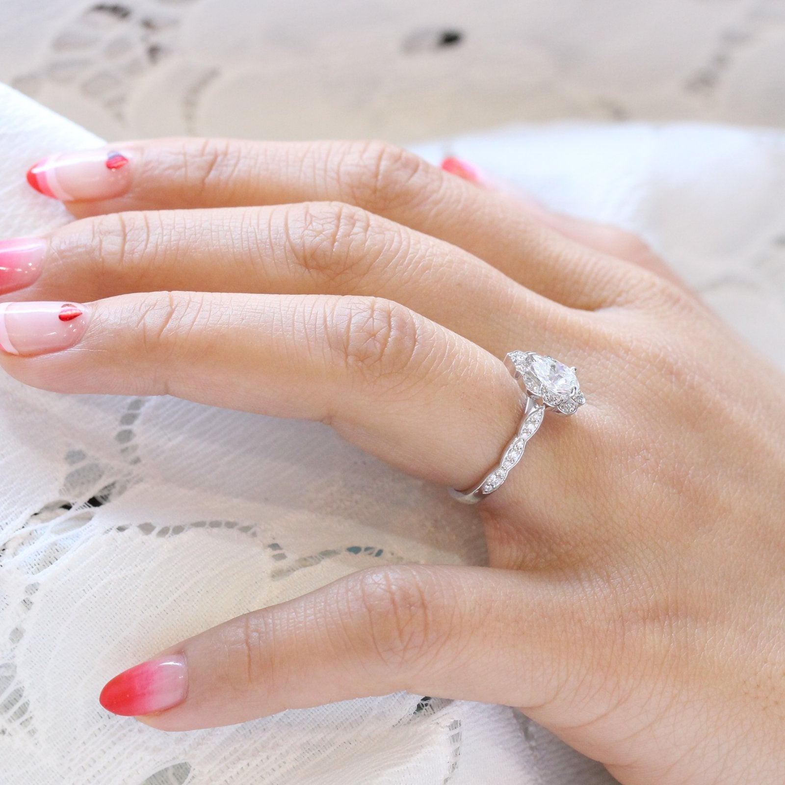1.0CT Vintage Floral Pear Cut Diamond Moissanite Halo Engagement Ring