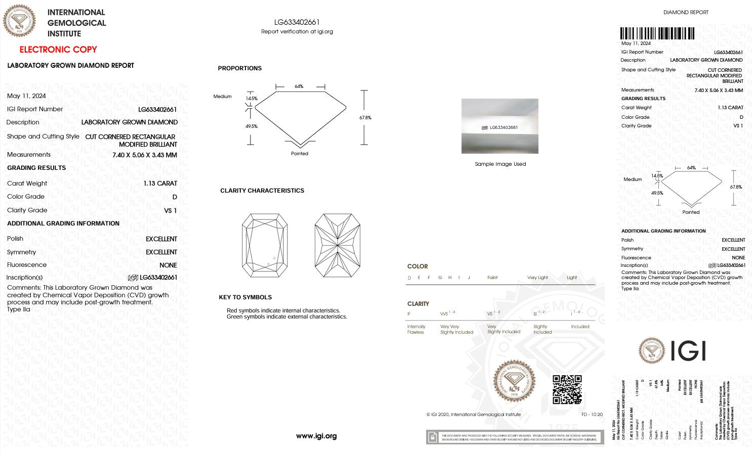 1.13ct D-VS1 Radiant Lab Diamond Pendant