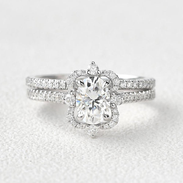 1.21CT Oval Cut Moissanite Vintage Halo Bridal Ring Set