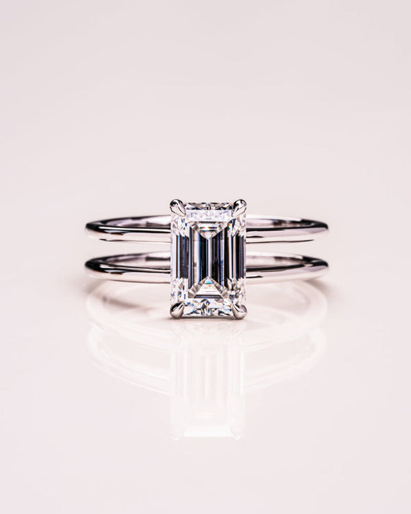 1.50 - 3.0 CT Emerald CVD Diamond Solitaire Double Band Engagement Ring