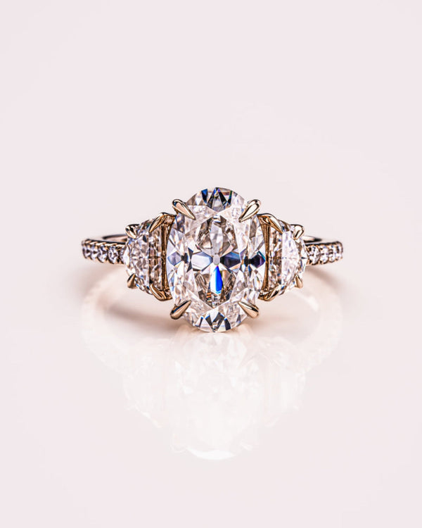 1.50 - 3.0 CT Oval CVD Diamond Three Stone Style Engagement Ring