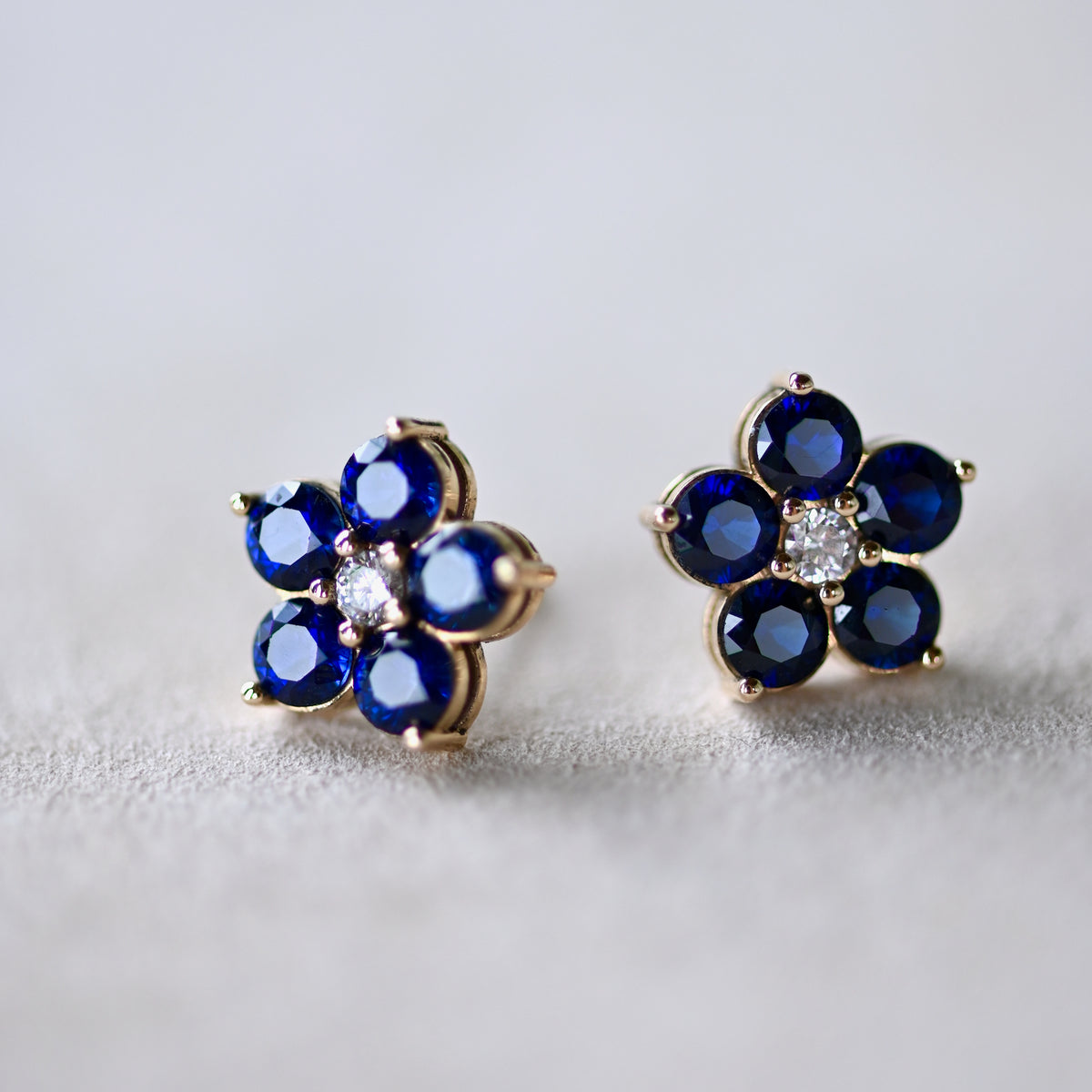 1.46CT Round Sapphire Diamond September Birthstone Studs
