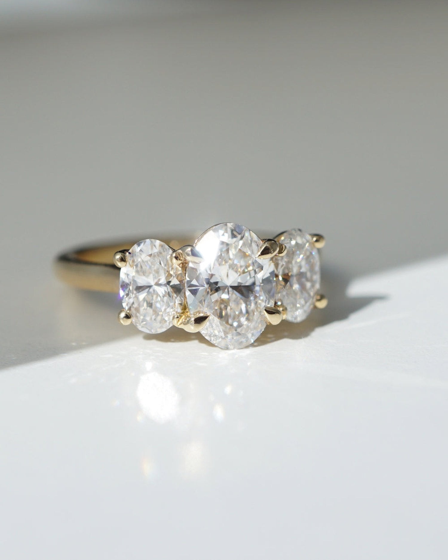 2.0 CT Oval CVD Diamond Three Stone Engagement Ring