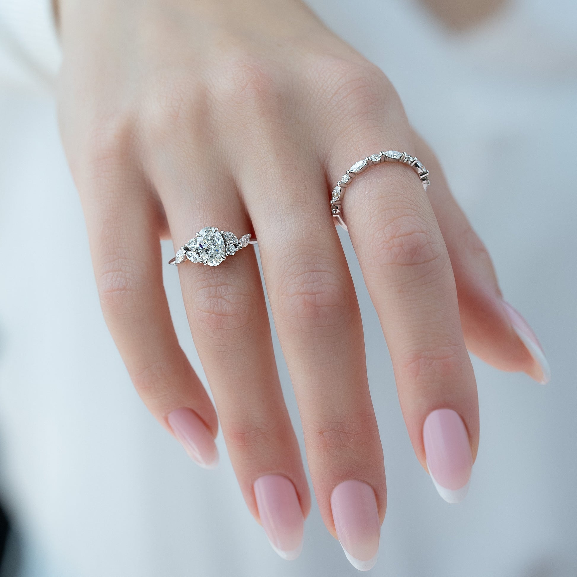 1.50 - 3.50 CT Oval Cut CVD Diamond Cluster Engagement Ring