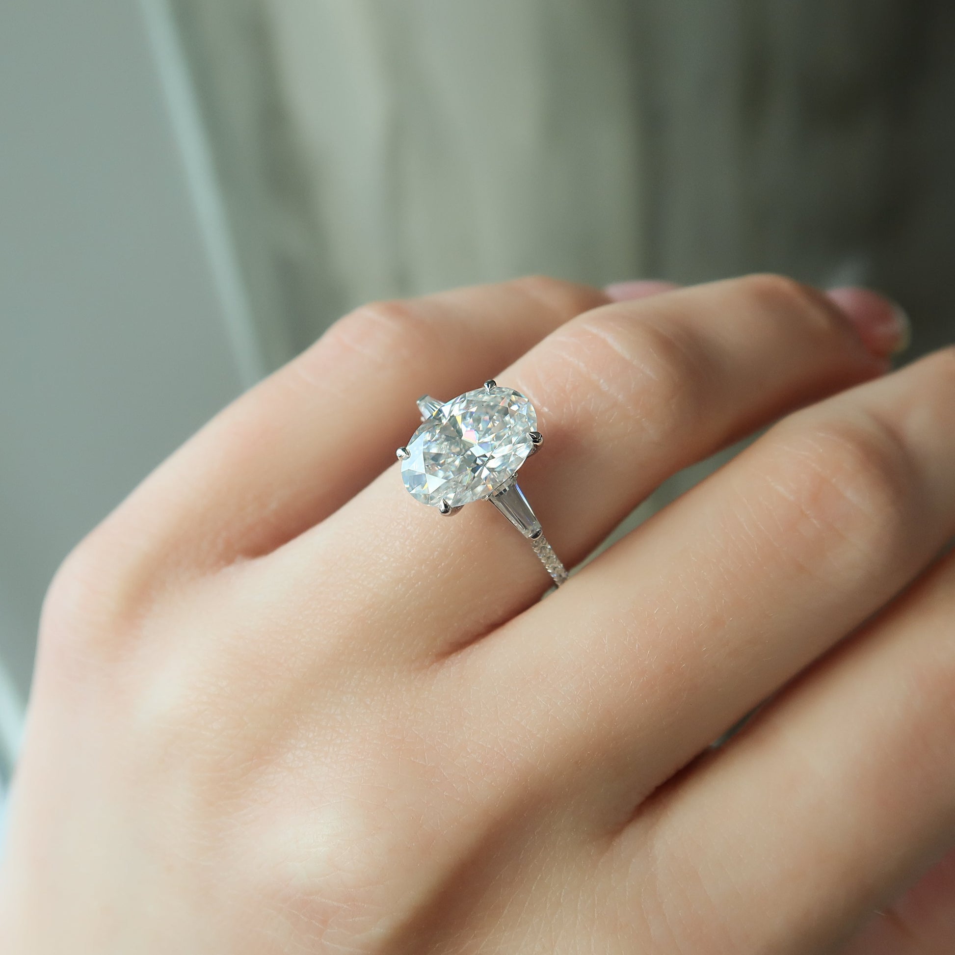 1.50 - 3.50 CT Oval Cut CVD Diamond Three Stone Engagement Ring