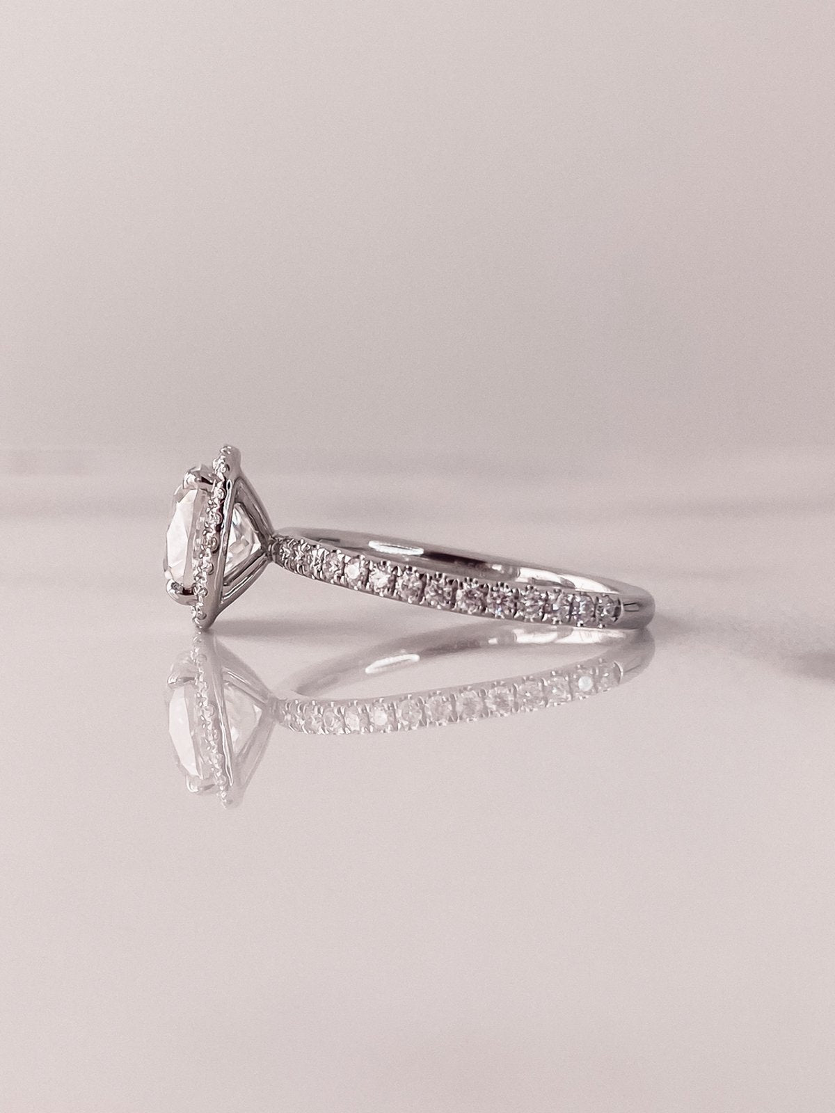 1.50CT Cushion Cut Halo Style Moissanite Engagement Ring