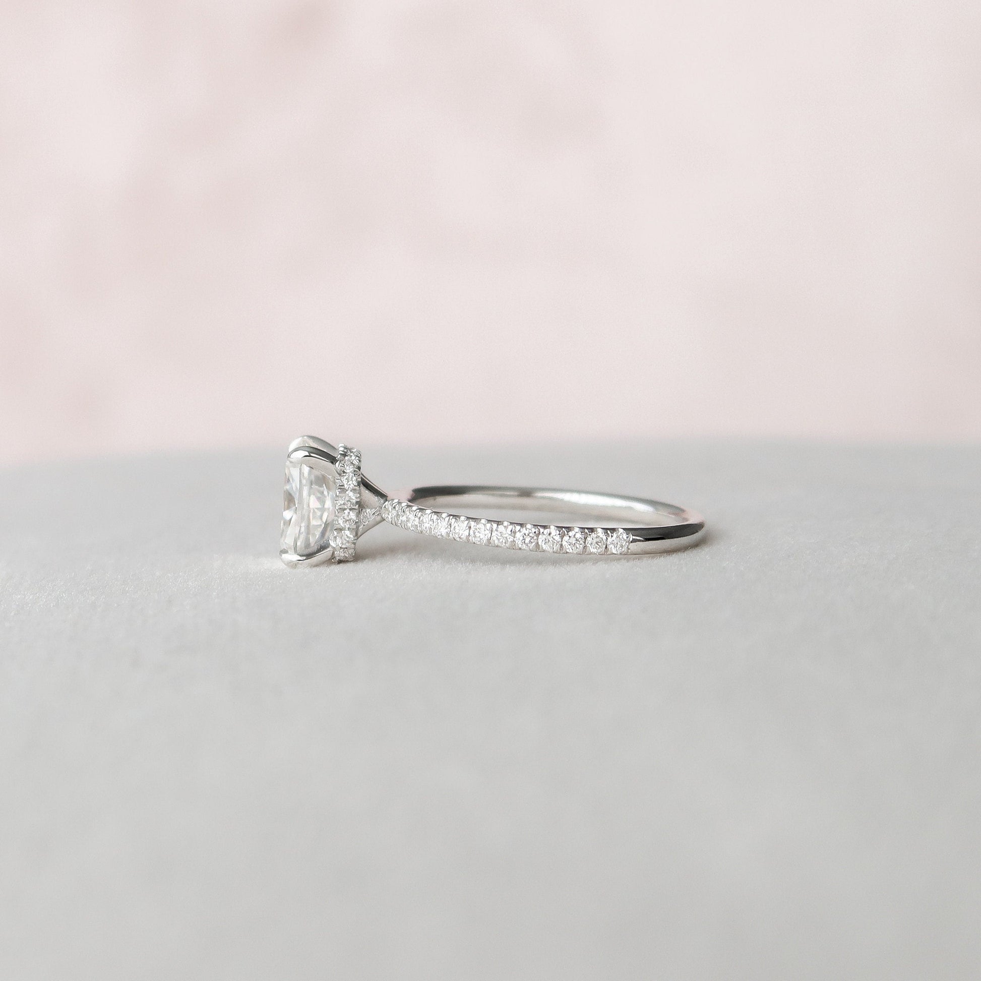 1.50CT Cushion Cut Solitaire Pave Style Moissanite Engagement Ring