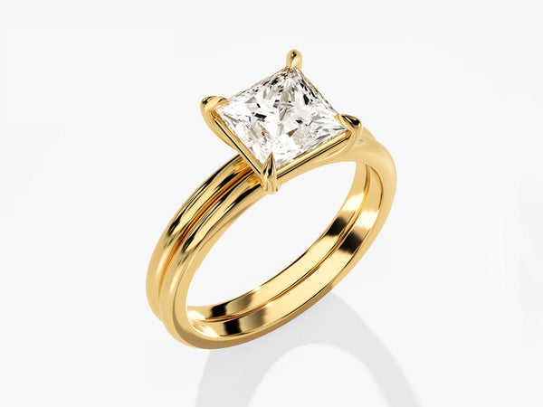 1.50CT Princess Cut Solitaire F-VS Lab Grown Diamond Engagement Ring Set