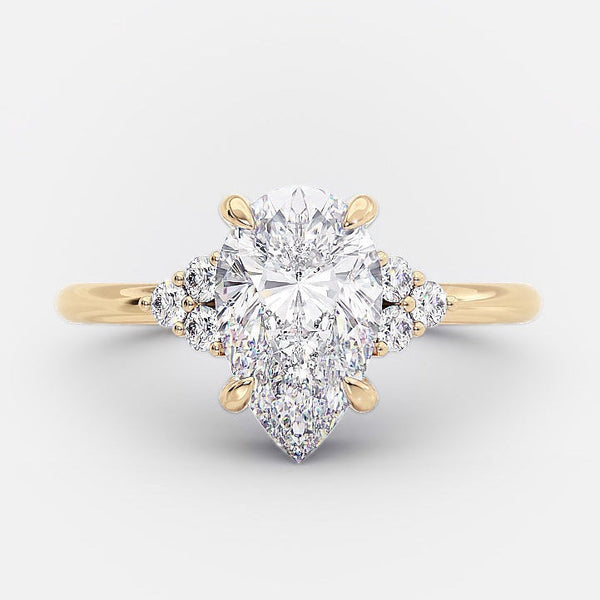 1.60CT Pear Cut Moissanite Cluster Engagement Ring