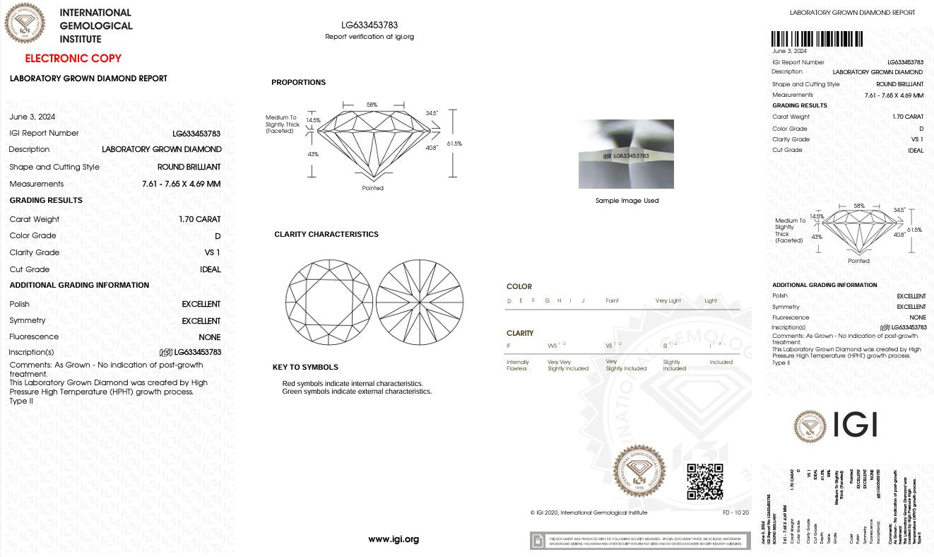 1.70ct D-VS1 Round Lab Diamond Pendant