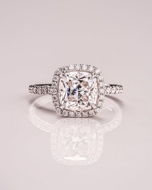 1.0 - 3.80 CT Cushion CVD Diamond Halo Pave Setting Engagement Ring