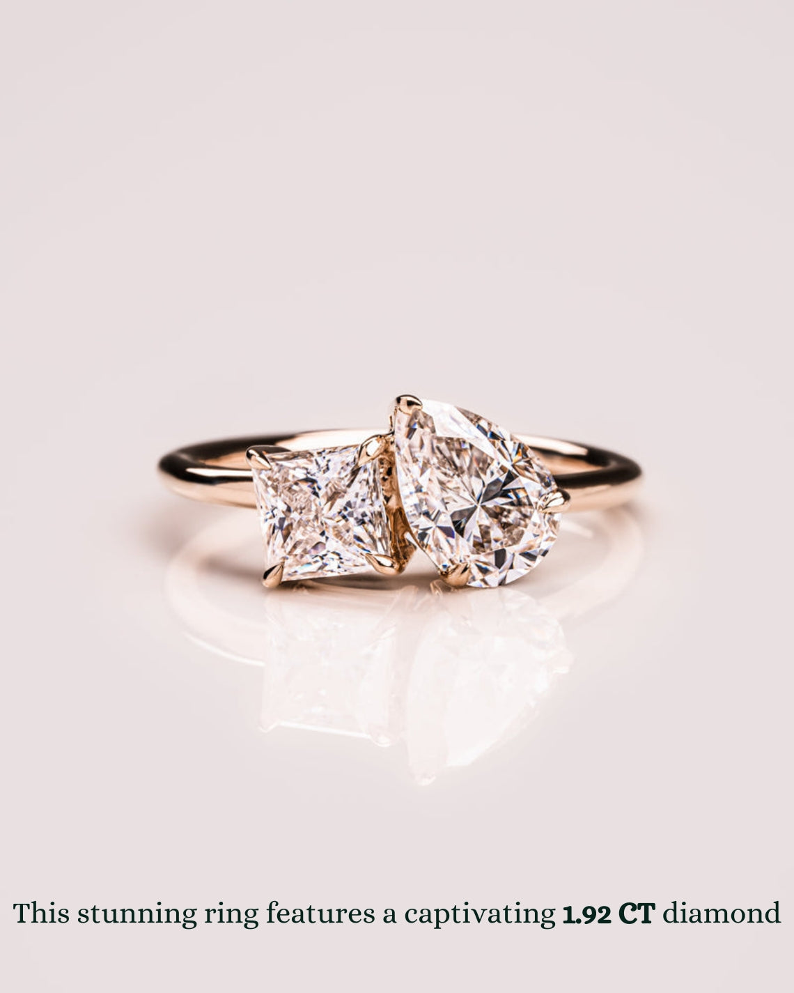 ✦ The Ring Shown in the Picture Holds a Beautiful 1.92 CT Pear & Princess Cut F-Color, VS2-Clarity CVD Lab Grown Diamond.