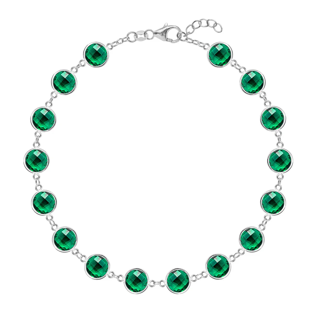 13.44CT Bezel Set Round Emerald Diamond May Birthstone Bracelet