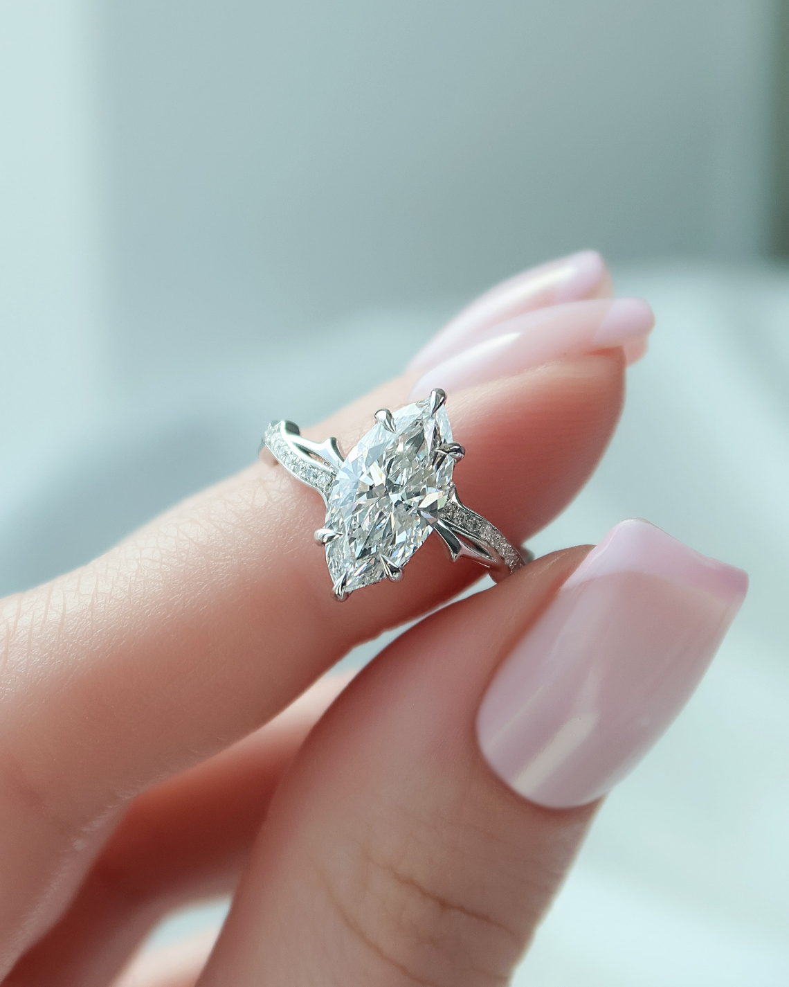 2.0 - 4.0 Carats Marquise shaped CVD Diamond twig & Pave Style Engagement Ring