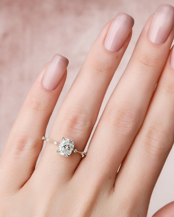 2.0 - 4.0 CT Elongated Cushion Cut CVD Diamond Hidden Halo & Dainty Style Engagement Ring