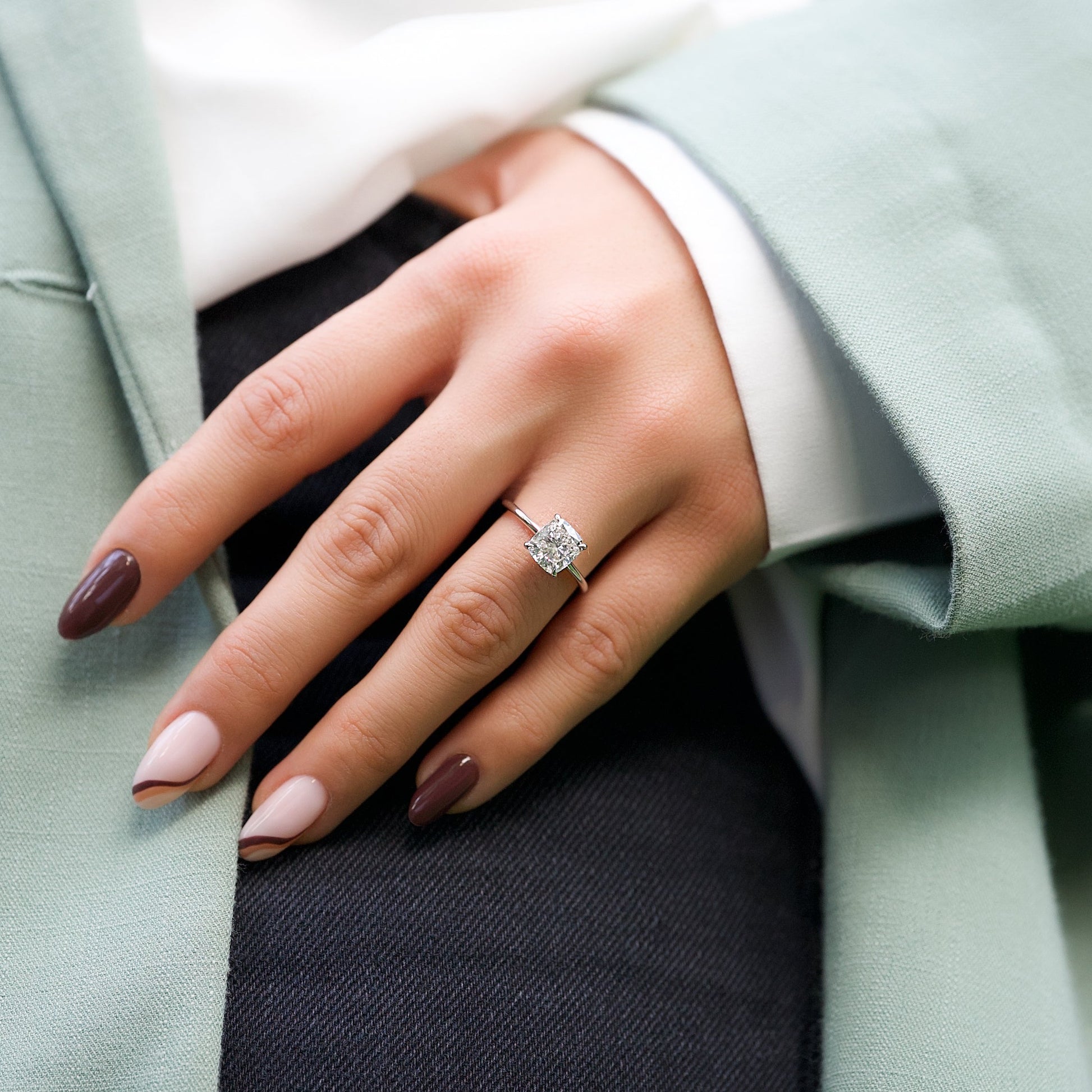 ✦ The Ring Shown in the Picture Holds a Beautiful Elongated Cushion Cut Lab Grown Diamond.